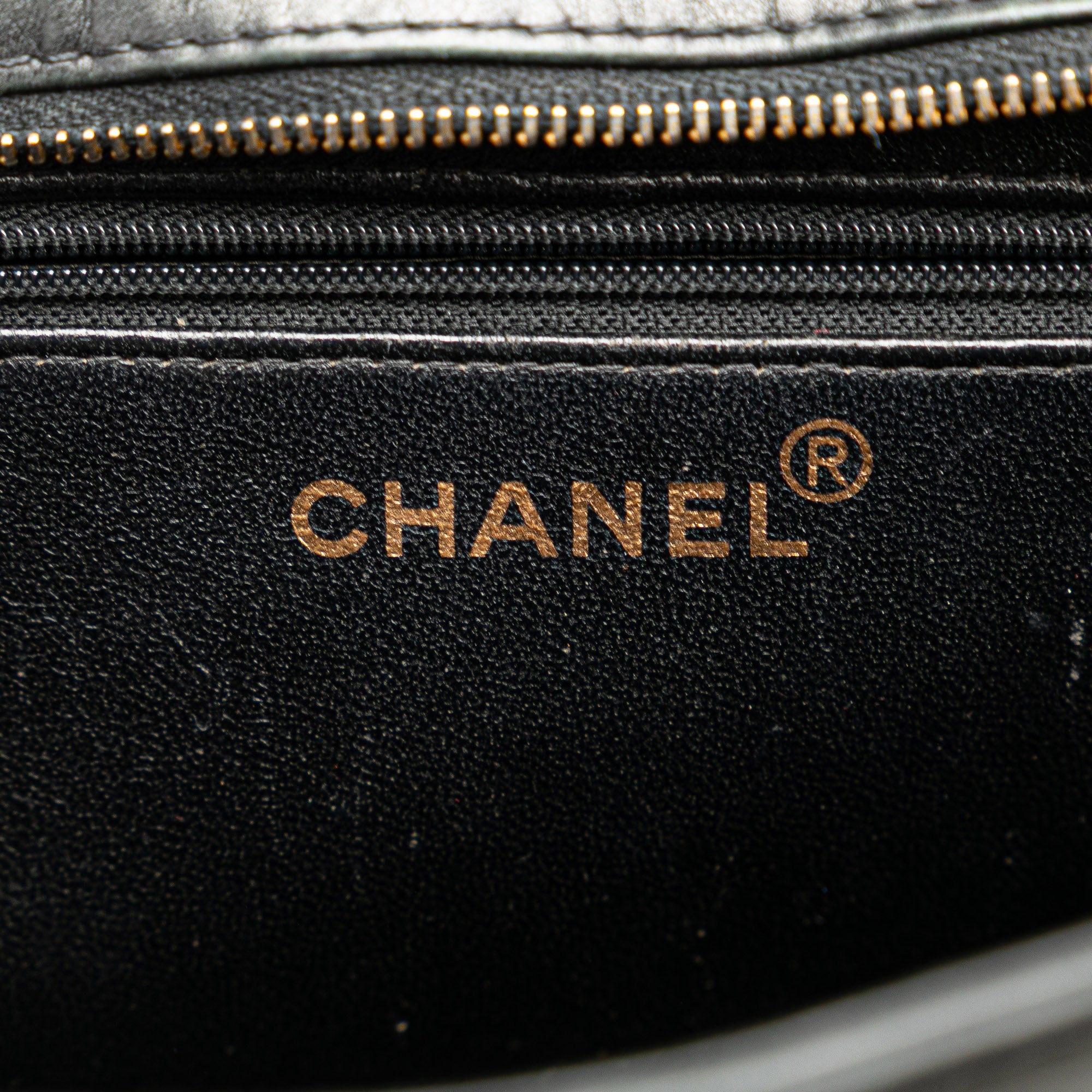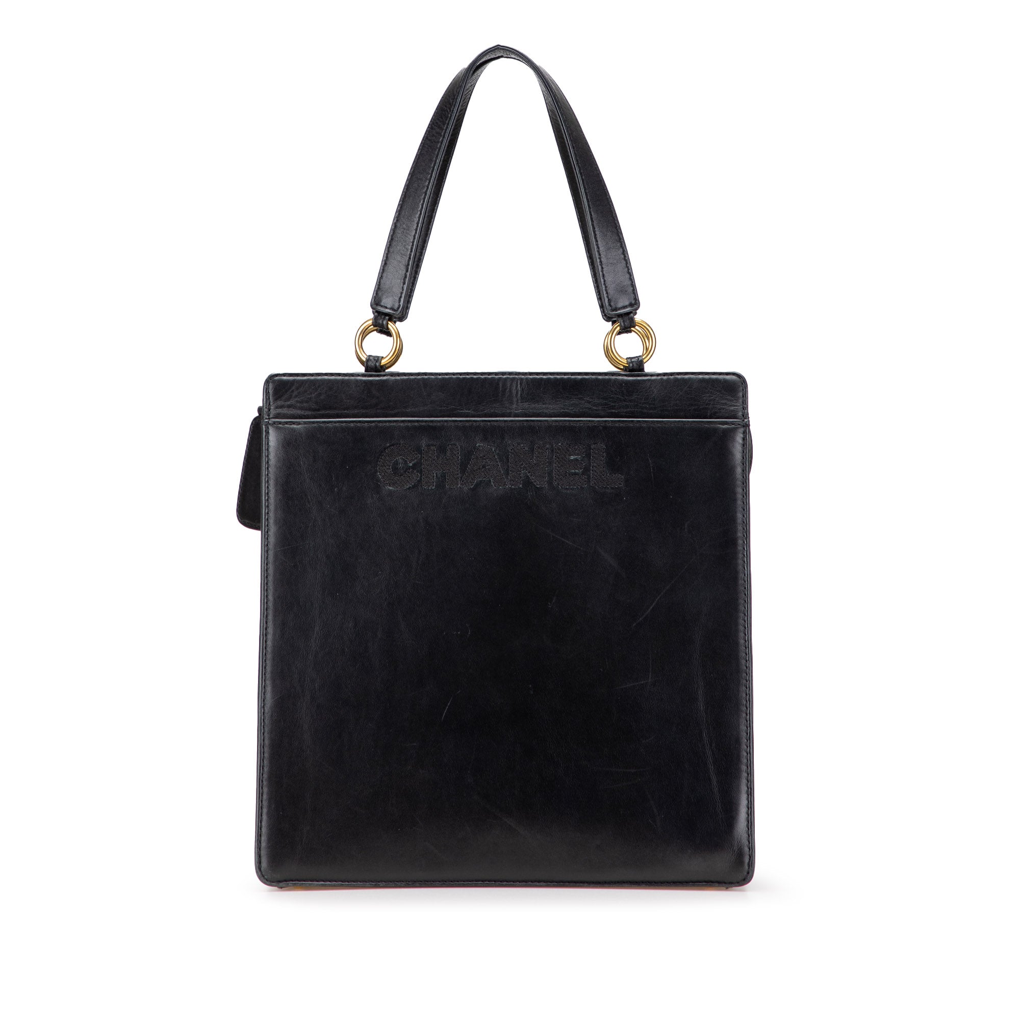 Black Chanel Lambskin Embroidered Logo Tote - Designer Revival Black Chanel Lambskin Embroidered Logo Tote - Designer Revival