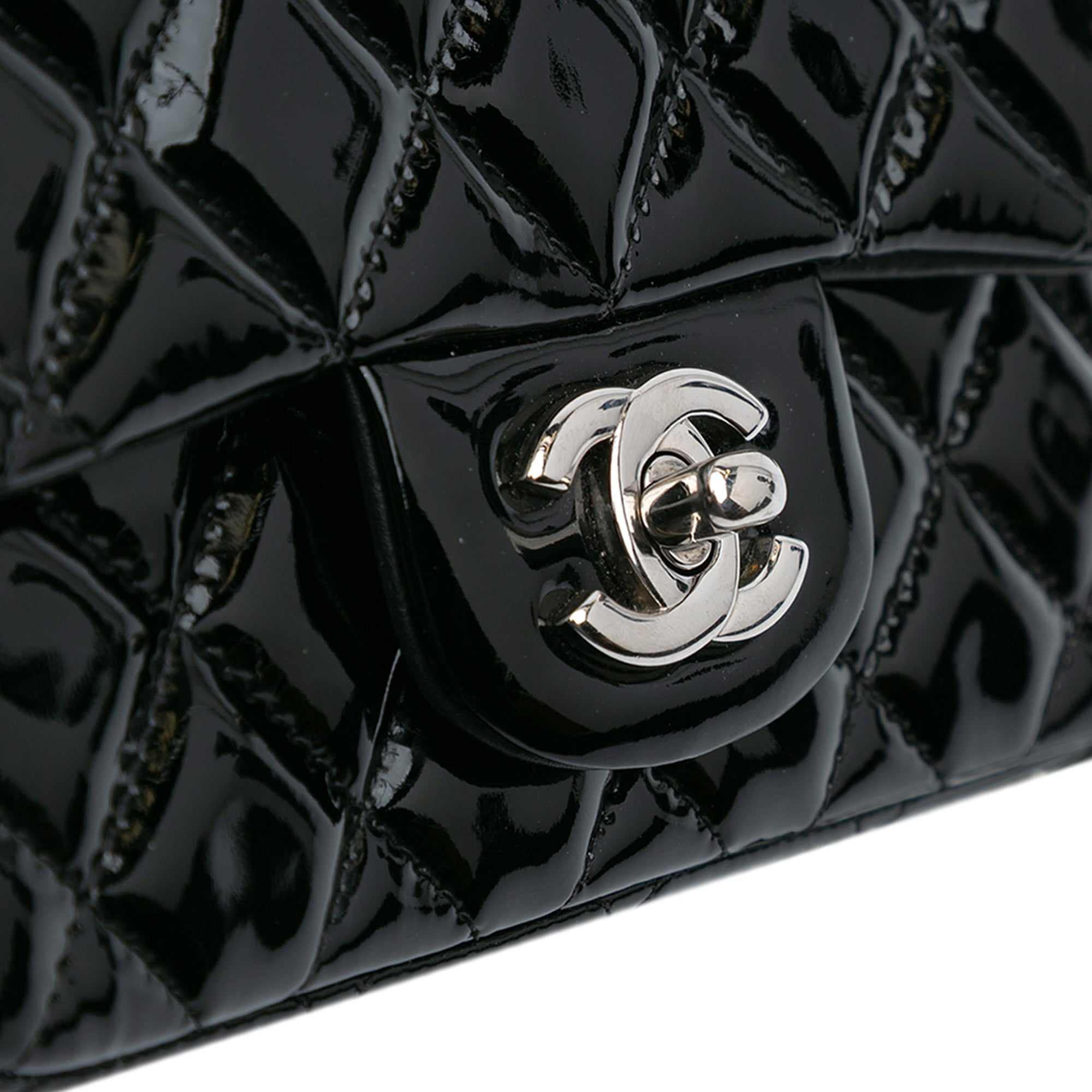 Black Chanel Mini Square Classic Patent Single Flap Crossbody Bag