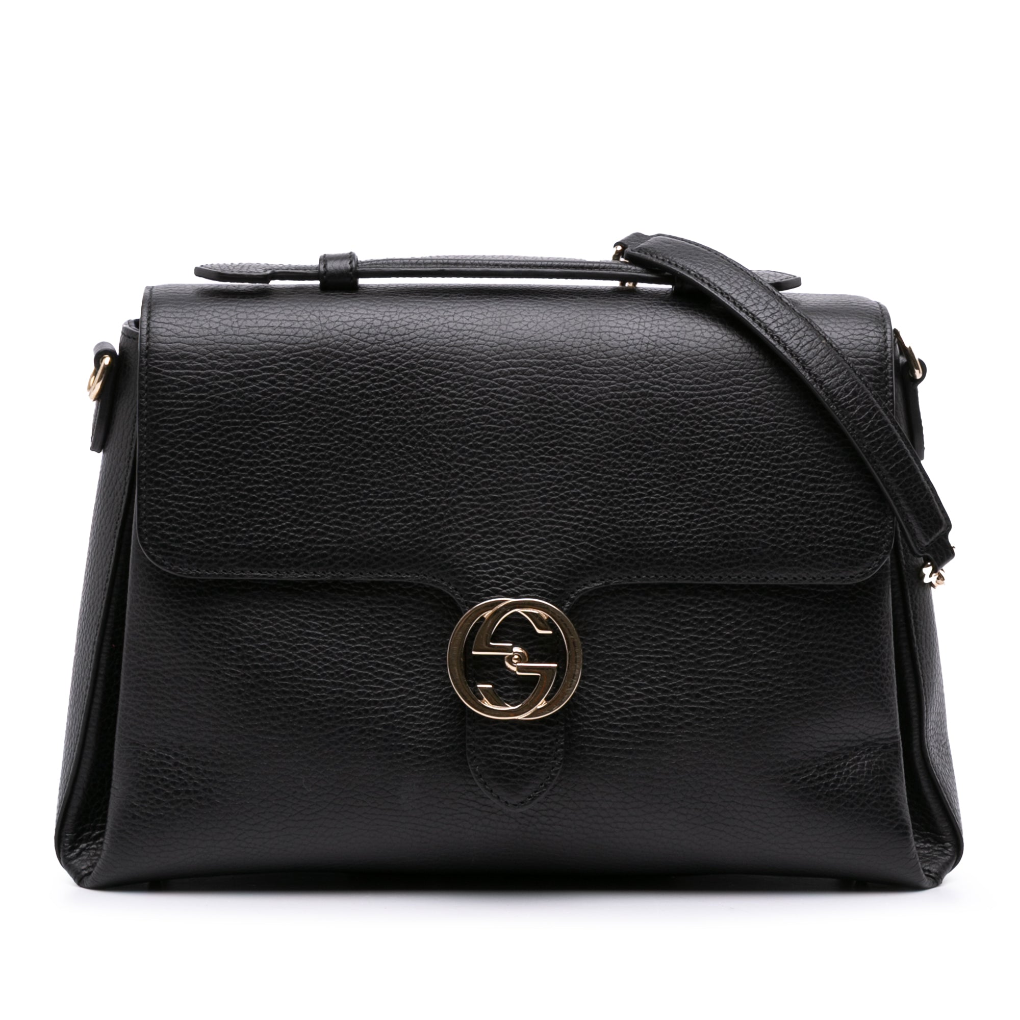 Black Gucci Medium Dollar Calf Interlocking G Satchel - Designer Revival Black Gucci Medium Dollar Calf Interlocking G Satchel - Designer Revival