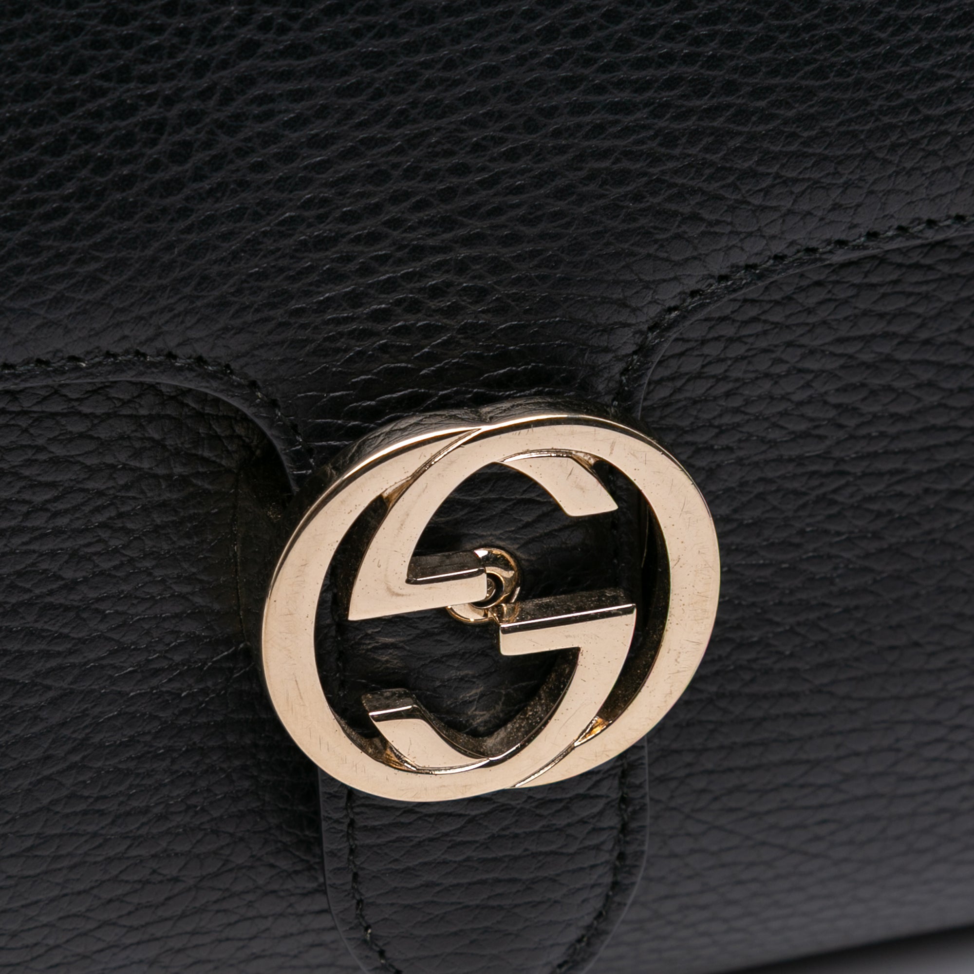Black Gucci Medium Dollar Calf Interlocking G Satchel