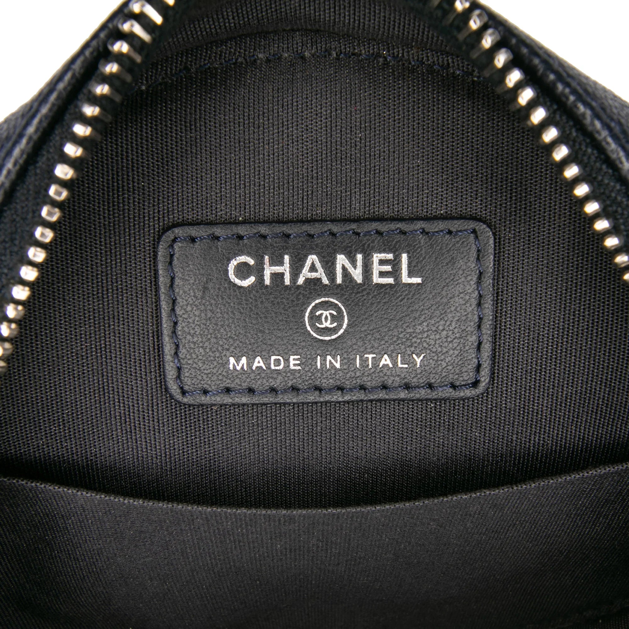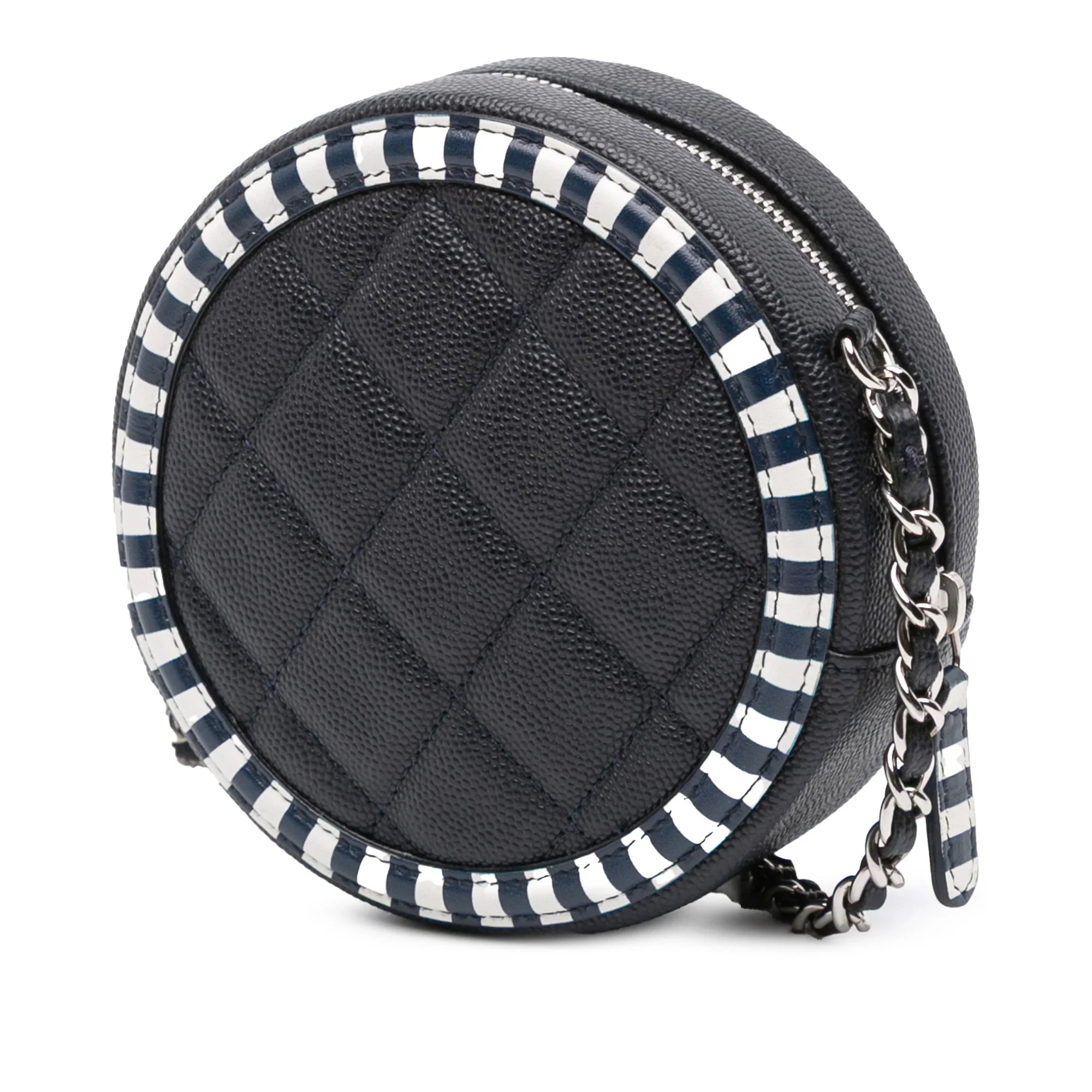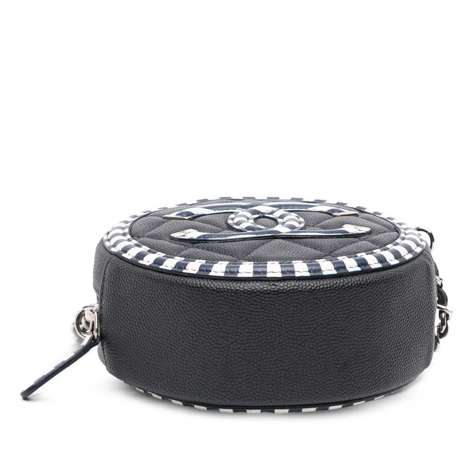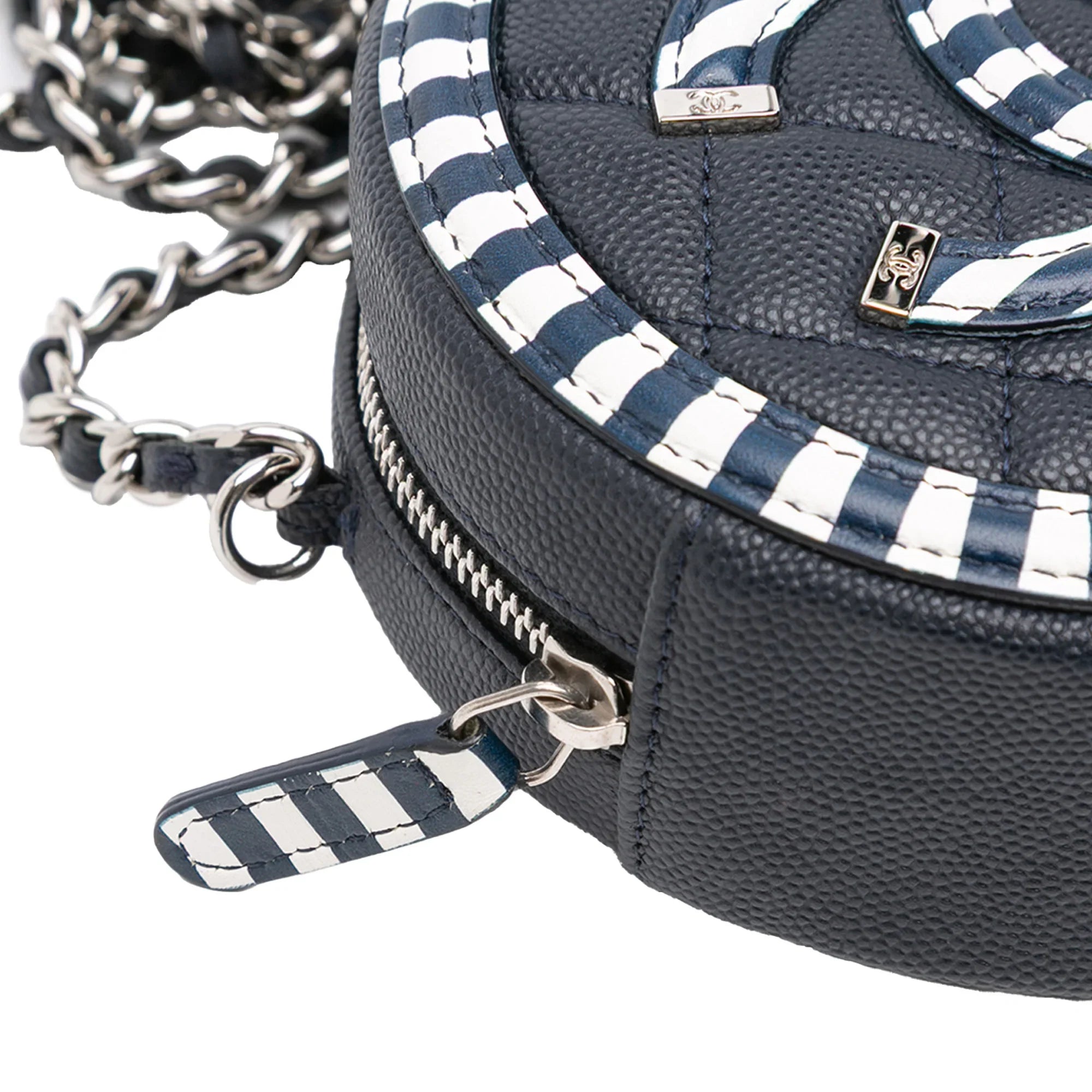 Blue Chanel Caviar Striped CC Filigree Round Crossbody