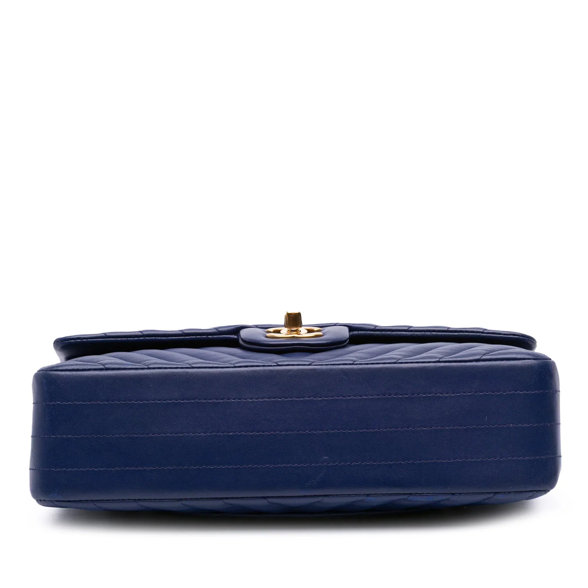 Blue Chanel Medium Classic Chevron Lambskin Double Flap Shoulder Bag