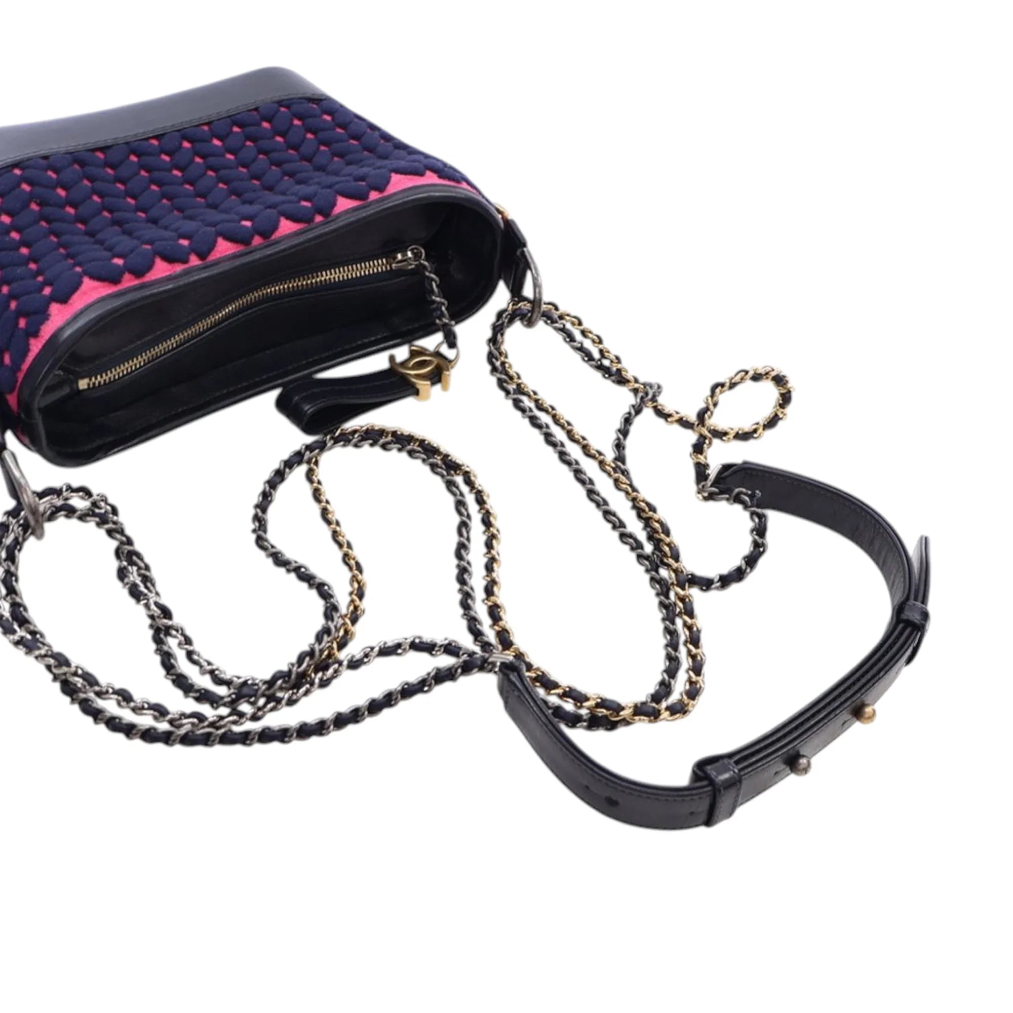 Blue Chanel Small Knit and Calfskin Gabrielle Hobo Crossbody Bag
