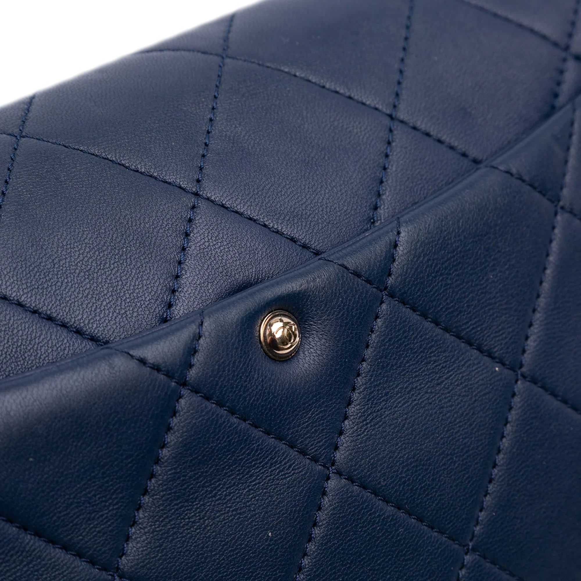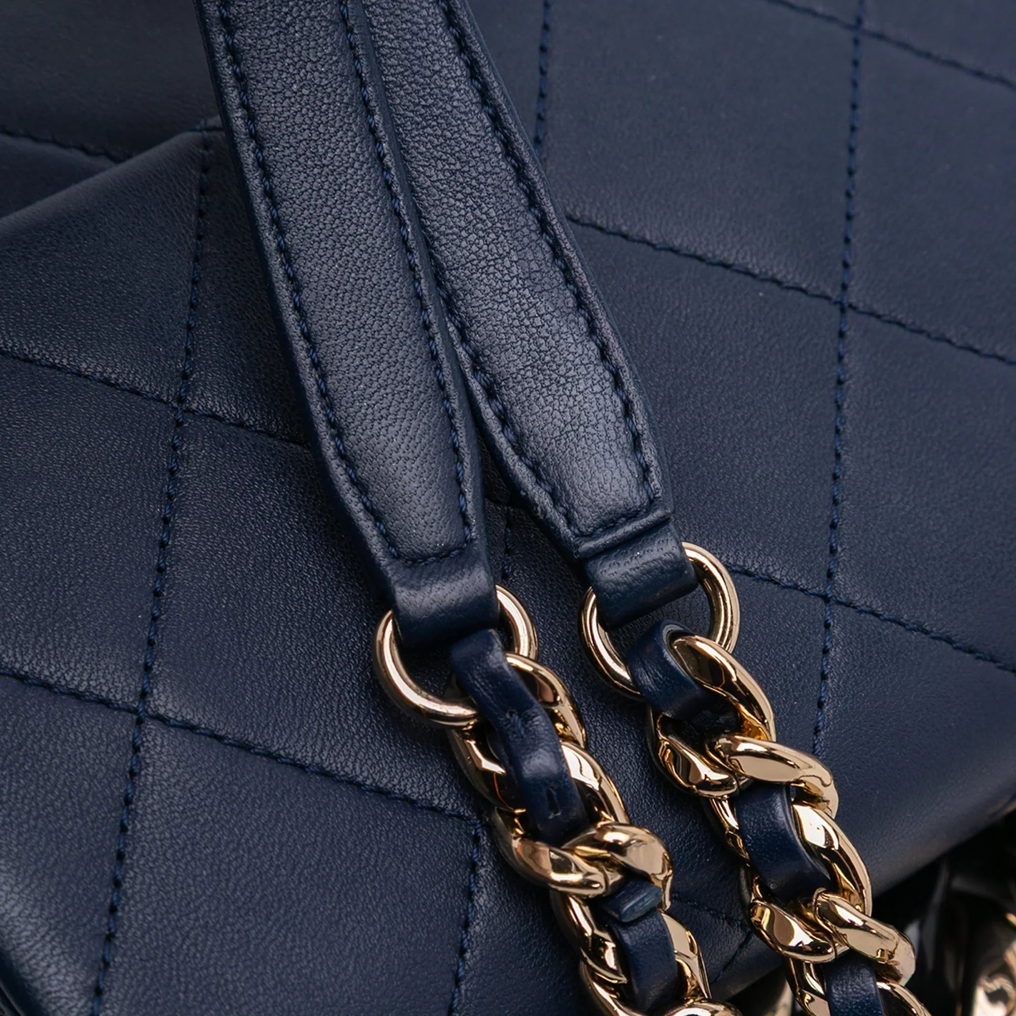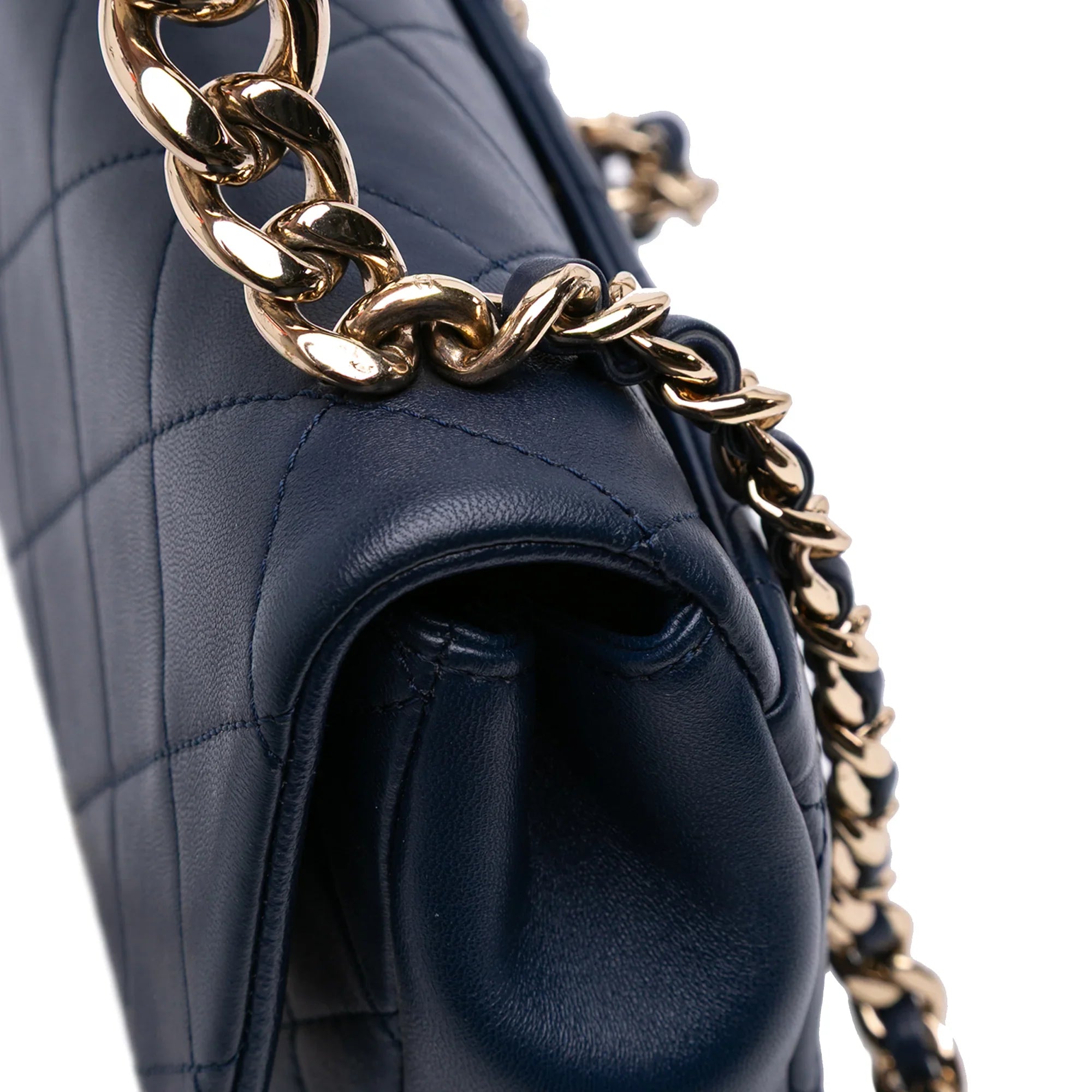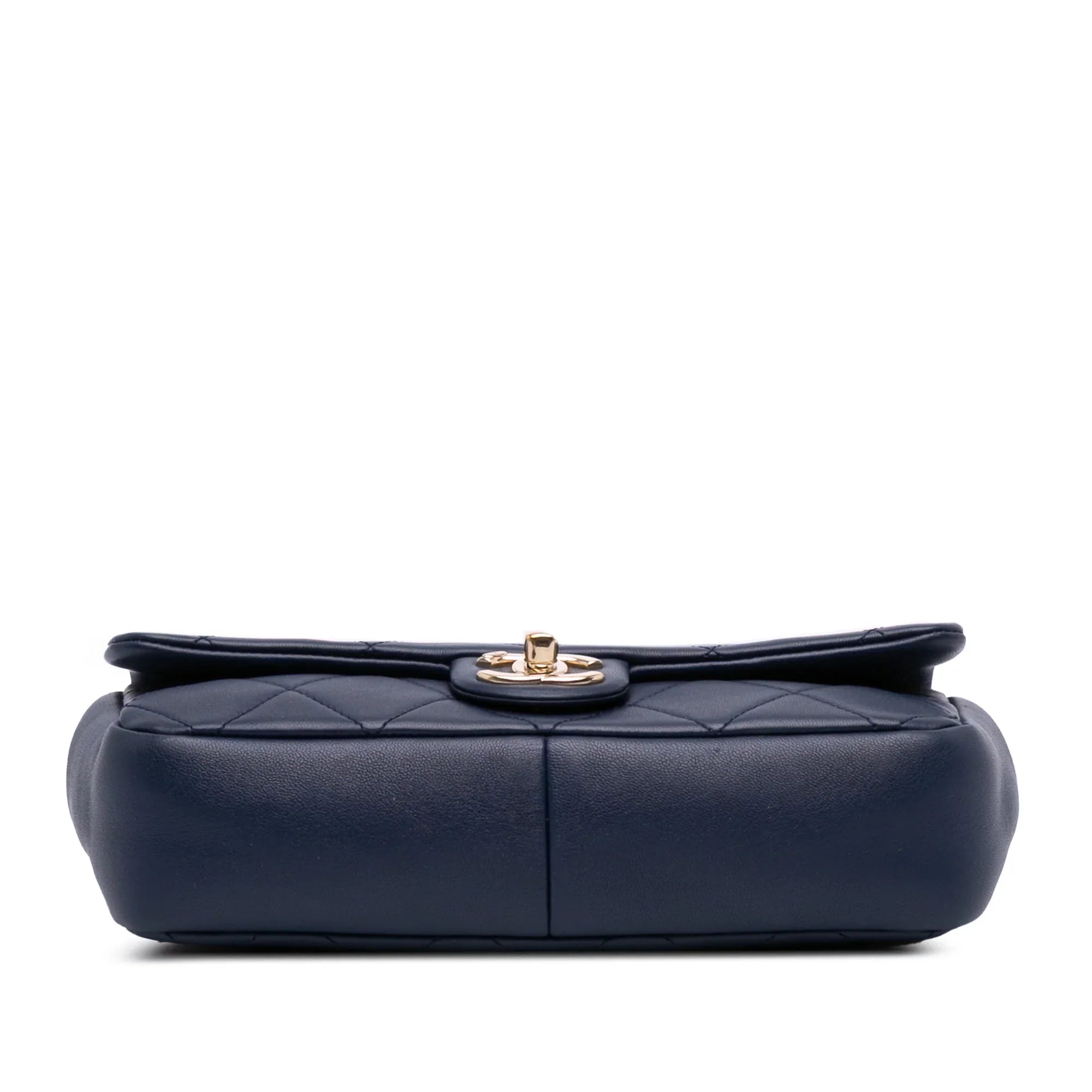 Blue Chanel Small Lambskin Elegant Chain Single Flap Satchel - Designer Revival Blue Chanel Small Lambskin Elegant Chain Single Flap Satchel - Designer Revival