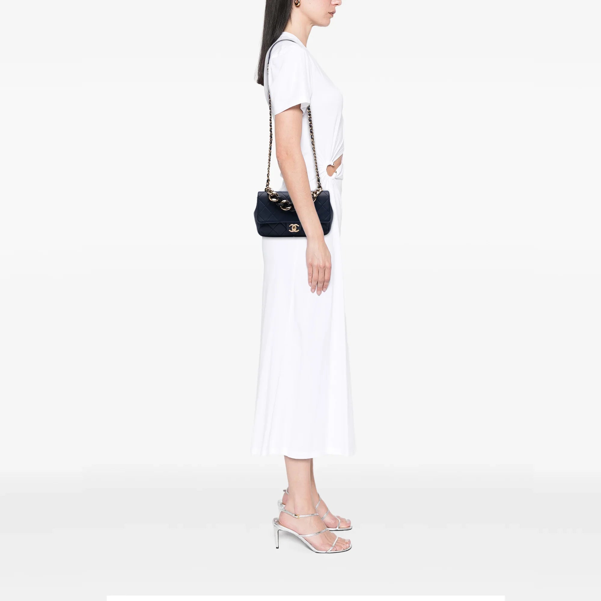 Blue Chanel Small Lambskin Elegant Chain Single Flap Satchel