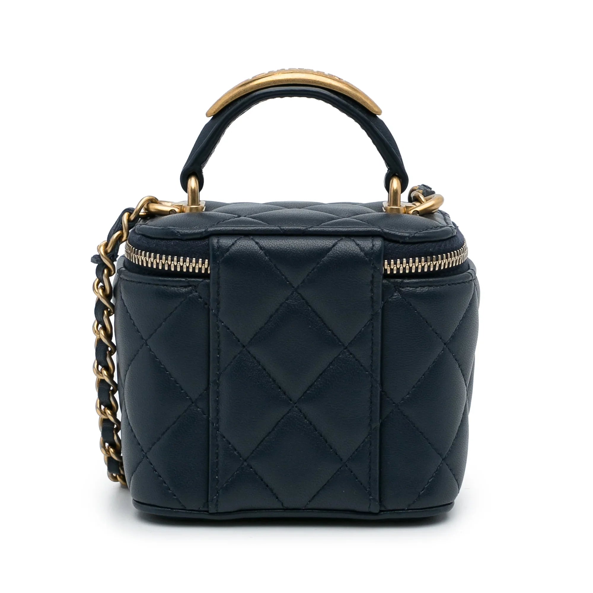 Blue Chanel Small Lambskin Top Handle Vanity Bag Satchel