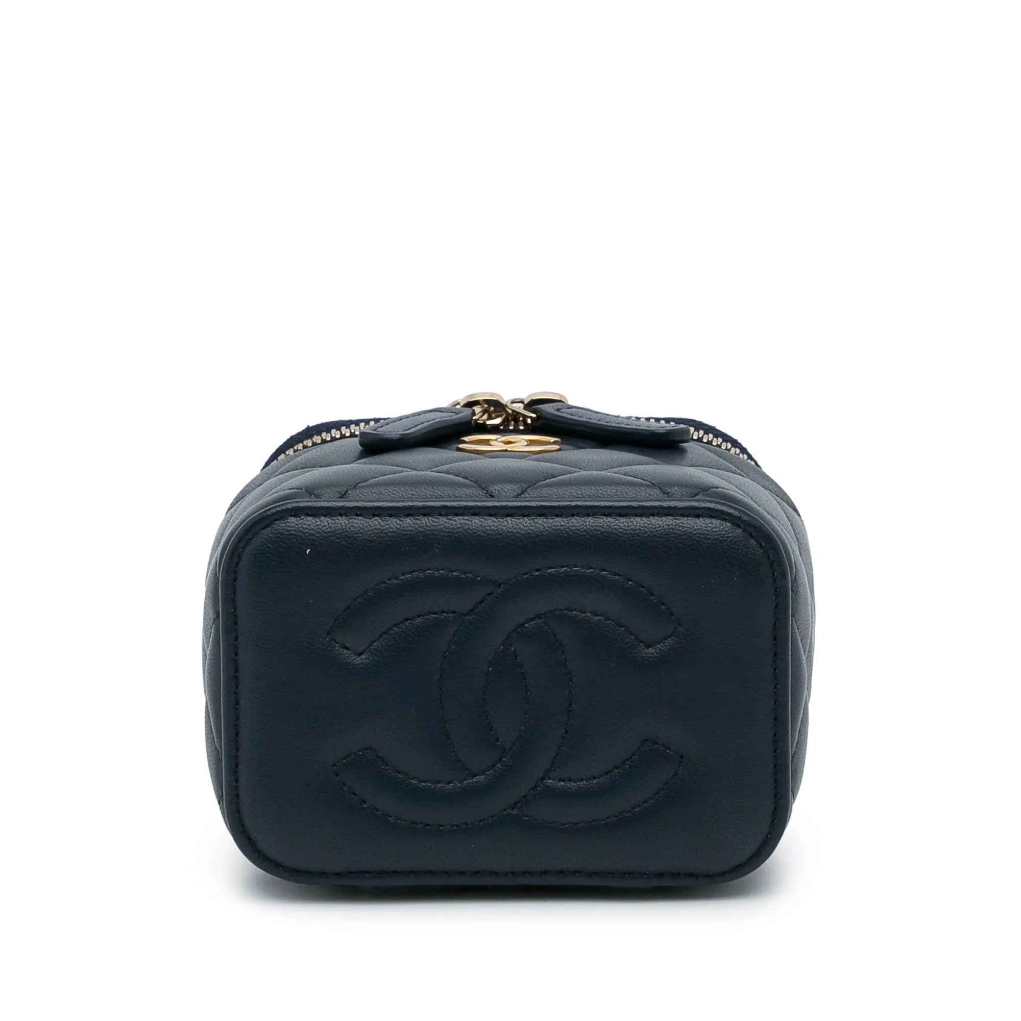 Please note this is a pre-owned item that may display signs of wear consistent with the condition listed above and shown in photos. Designer Revival guarantees this is an authentic Blue Chanel Small Lambskin Top Handle Vanity Bag Satchel or 100% of your money back. Learn more about our authentication process.
