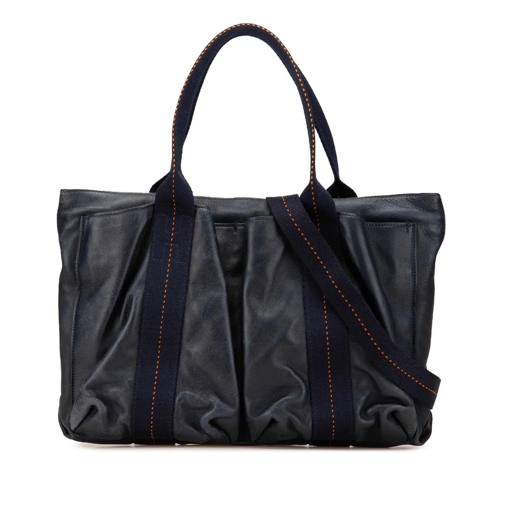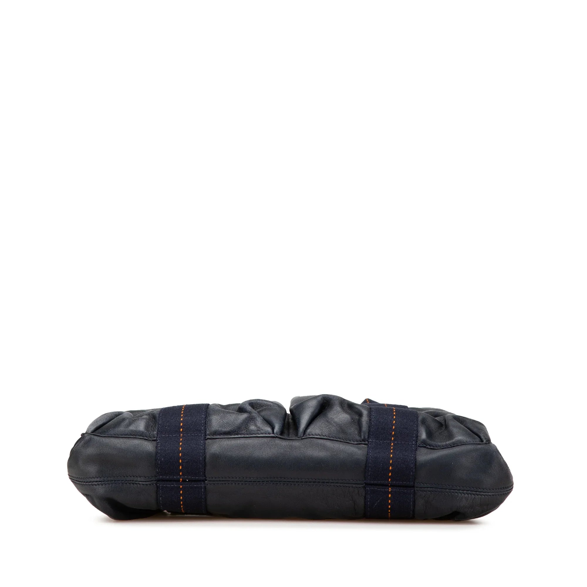 Blue Hermès Caravan Horizontal MM Satchel - Designer Revival Blue Hermès Caravan Horizontal MM Satchel - Designer Revival
