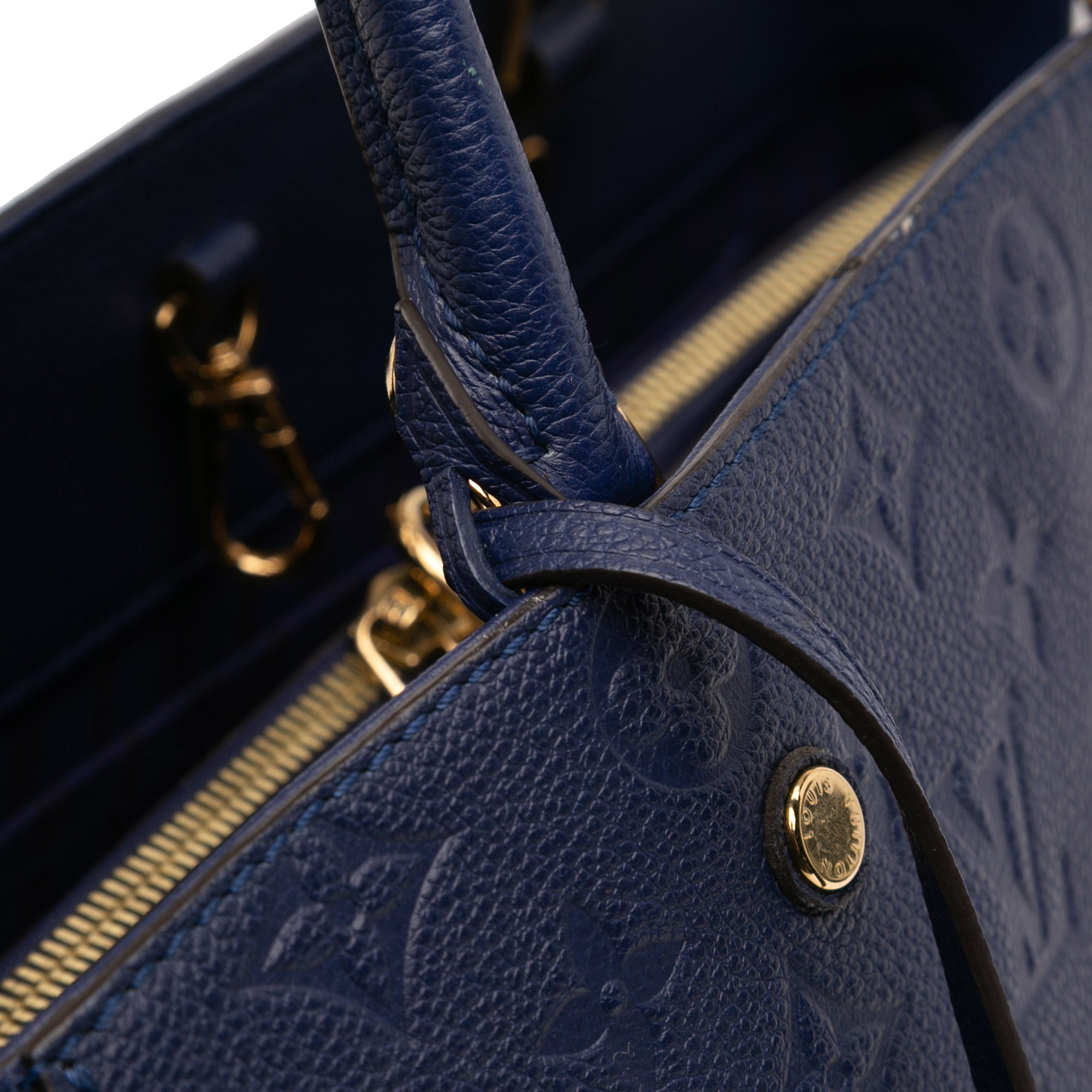Please note this is a pre-owned item that may display signs of wear consistent with the condition listed above and shown in photos. Designer Revival guarantees this is an authentic Blue Louis Vuitton Monogram Empreinte Montaigne GM Satchel or 100% of your money back. Learn more about our authentication process.