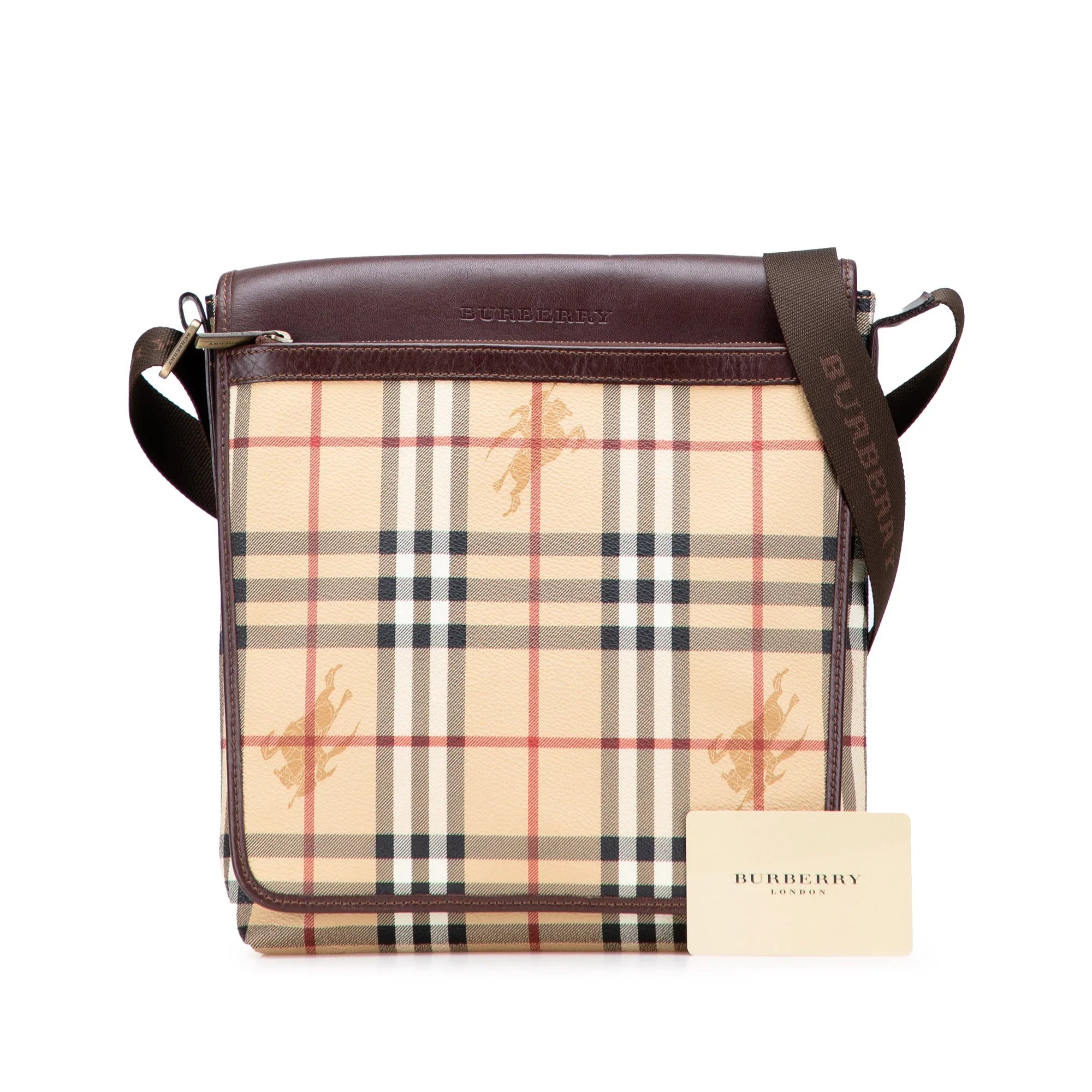 Brown Burberry Haymarket Check Coated Canvas Crossbody - Designer Revival Brown Burberry Haymarket Check Coated Canvas Crossbody - Designer Revival
