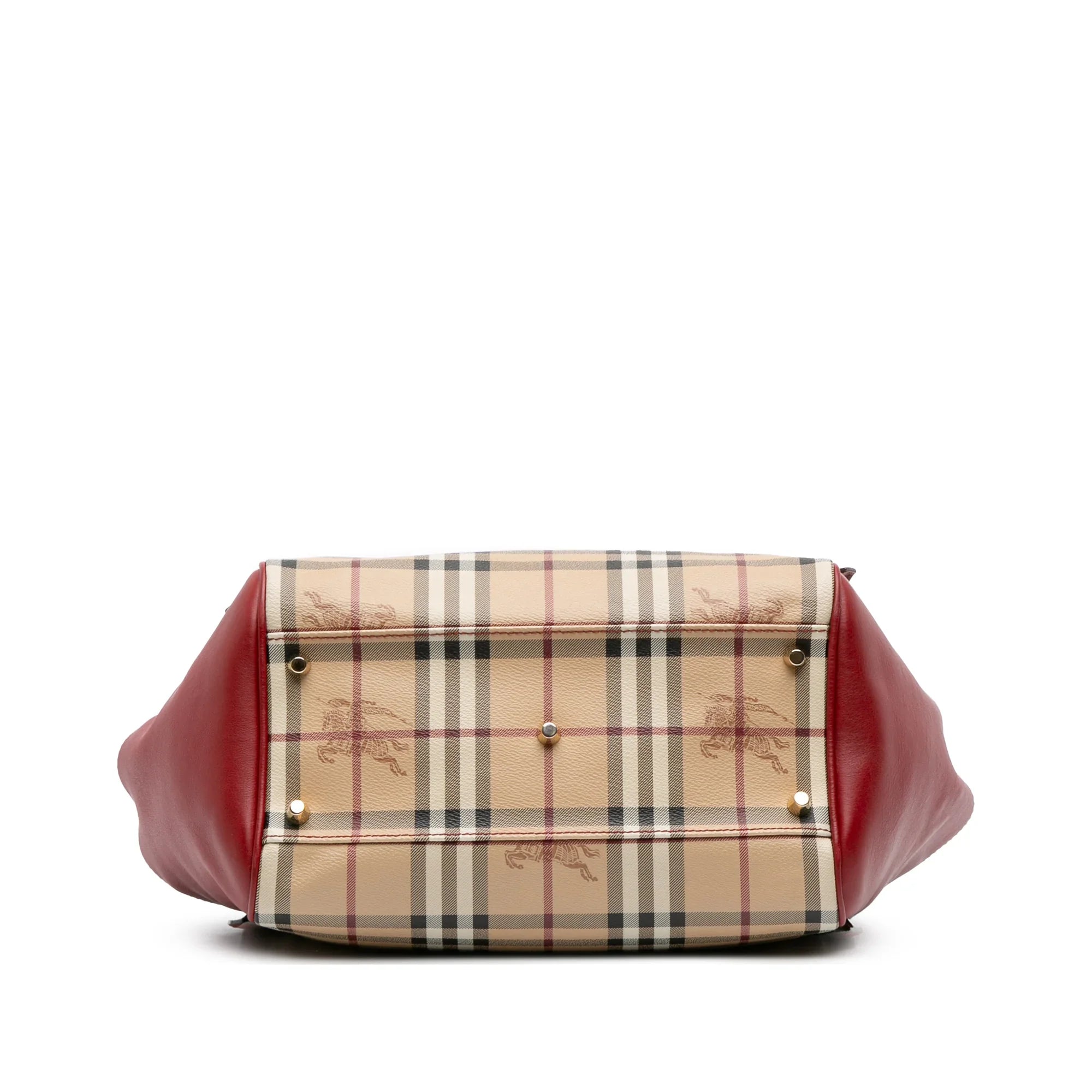 Brown Burberry Small Haymarket Check Coated Canvas Canterbury Tote - Designer Revival Brown Burberry Small Haymarket Check Coated Canvas Canterbury Tote - Designer Revival