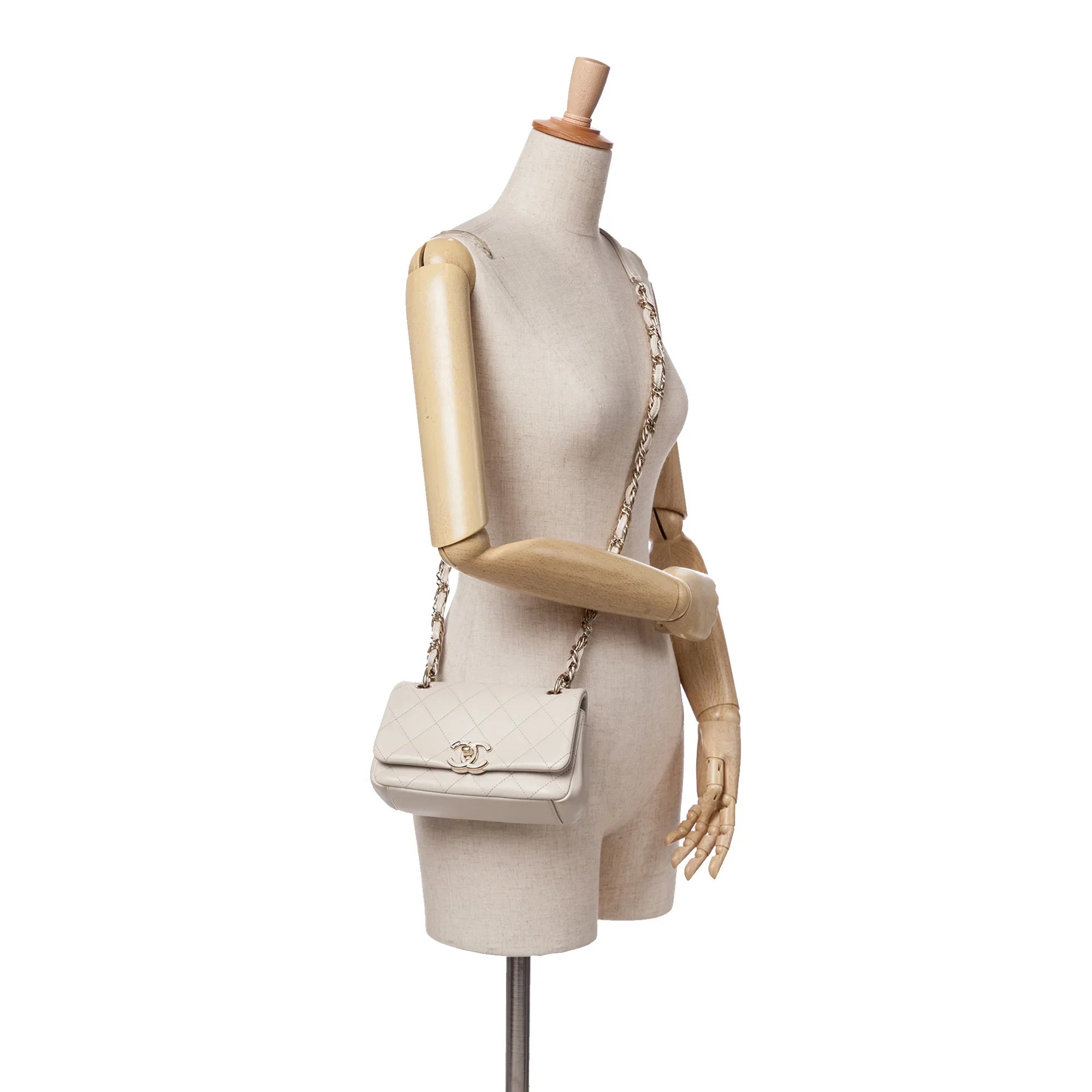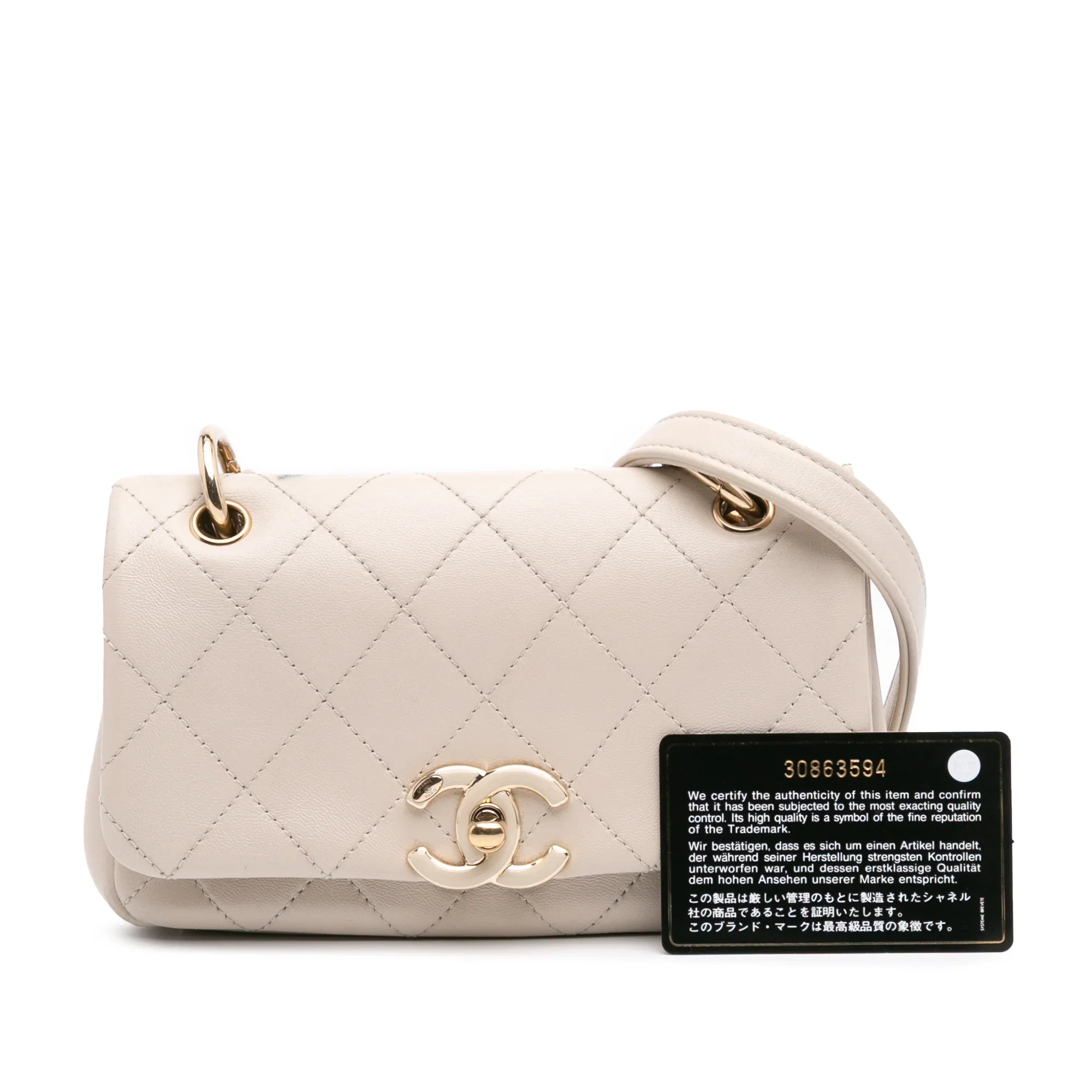 Brown Chanel Medium Lambskin Twist Chain Enamel CC Flap Crossbody Bag