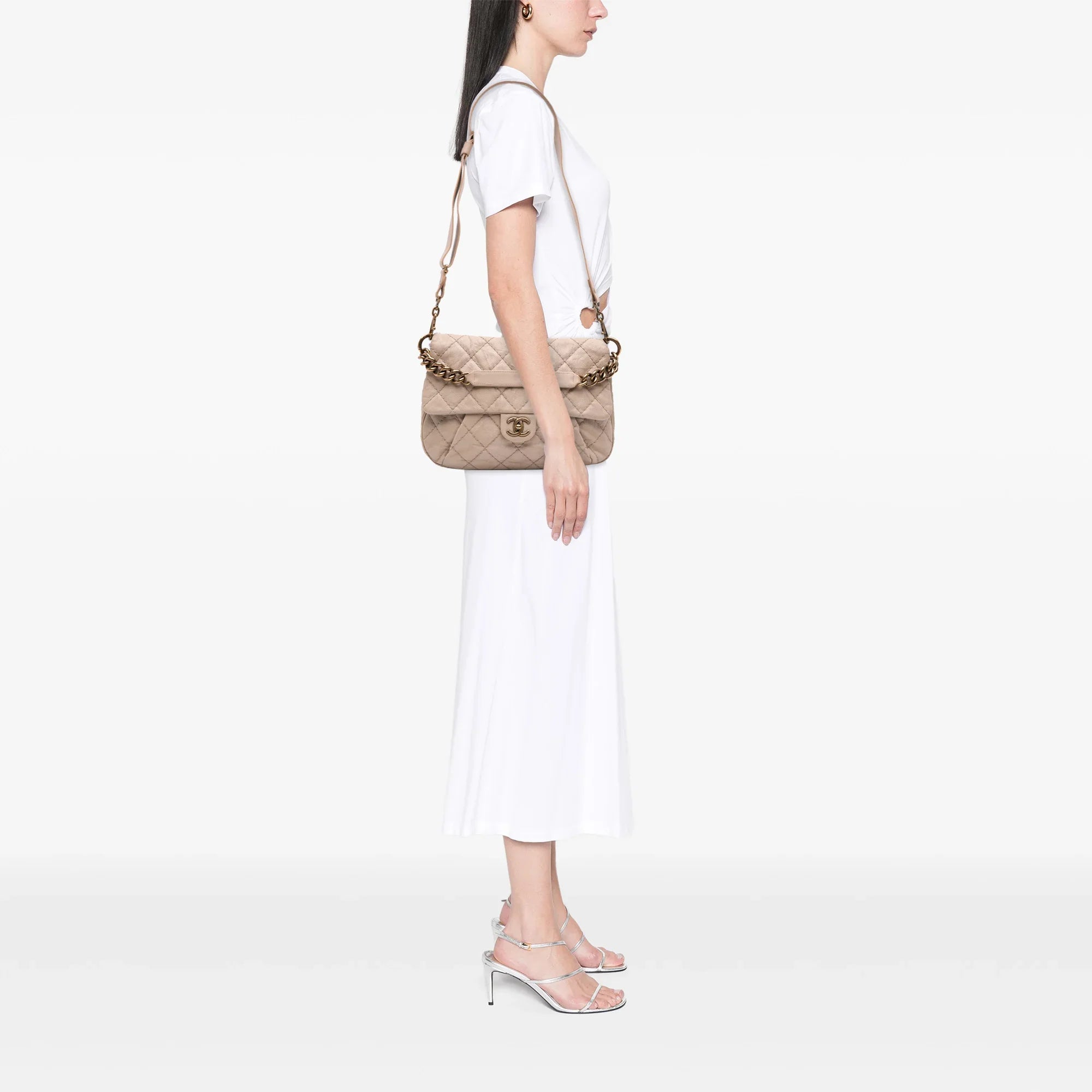Brown Chanel Medium Quilted Caviar Coco Pleats Messenger Flap Satchel - Designer Revival Brown Chanel Medium Quilted Caviar Coco Pleats Messenger Flap Satchel - Designer Revival