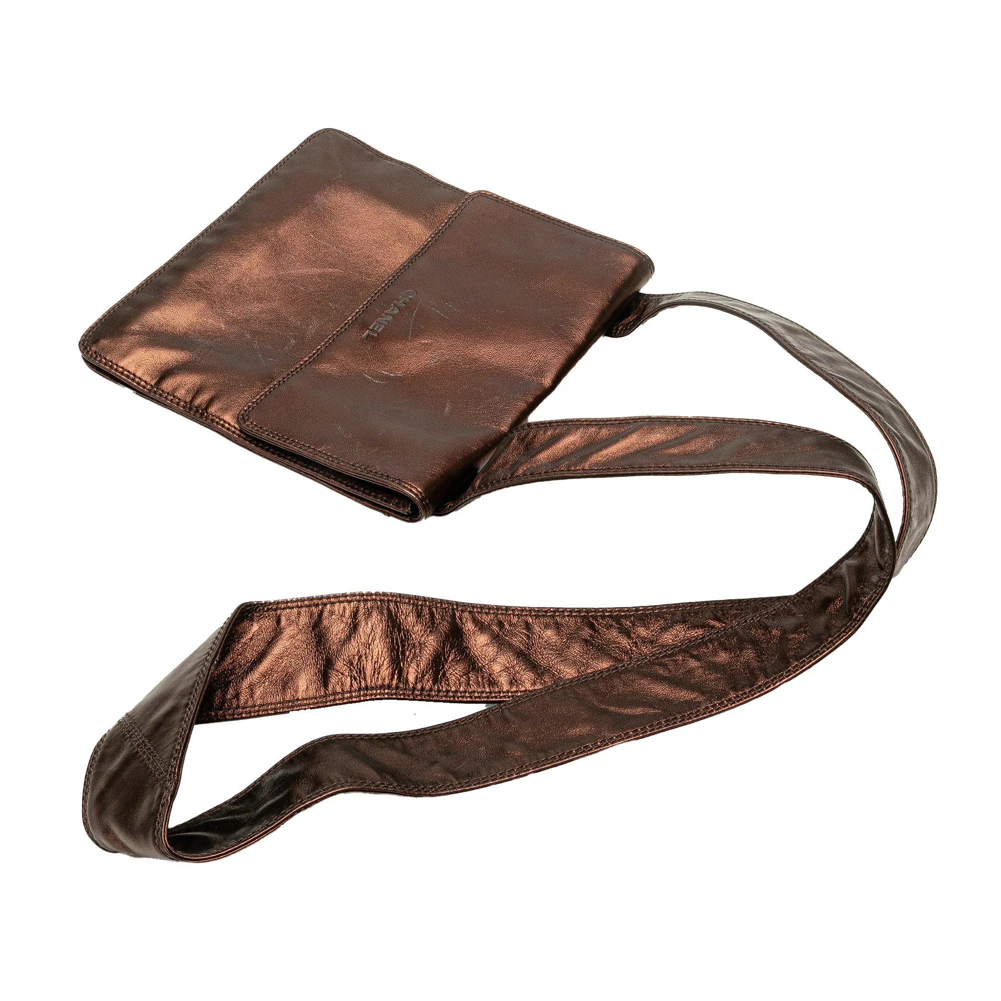 Brown Chanel Metallic Lambskin Flap Crossbody - Designer Revival Brown Chanel Metallic Lambskin Flap Crossbody - Designer Revival
