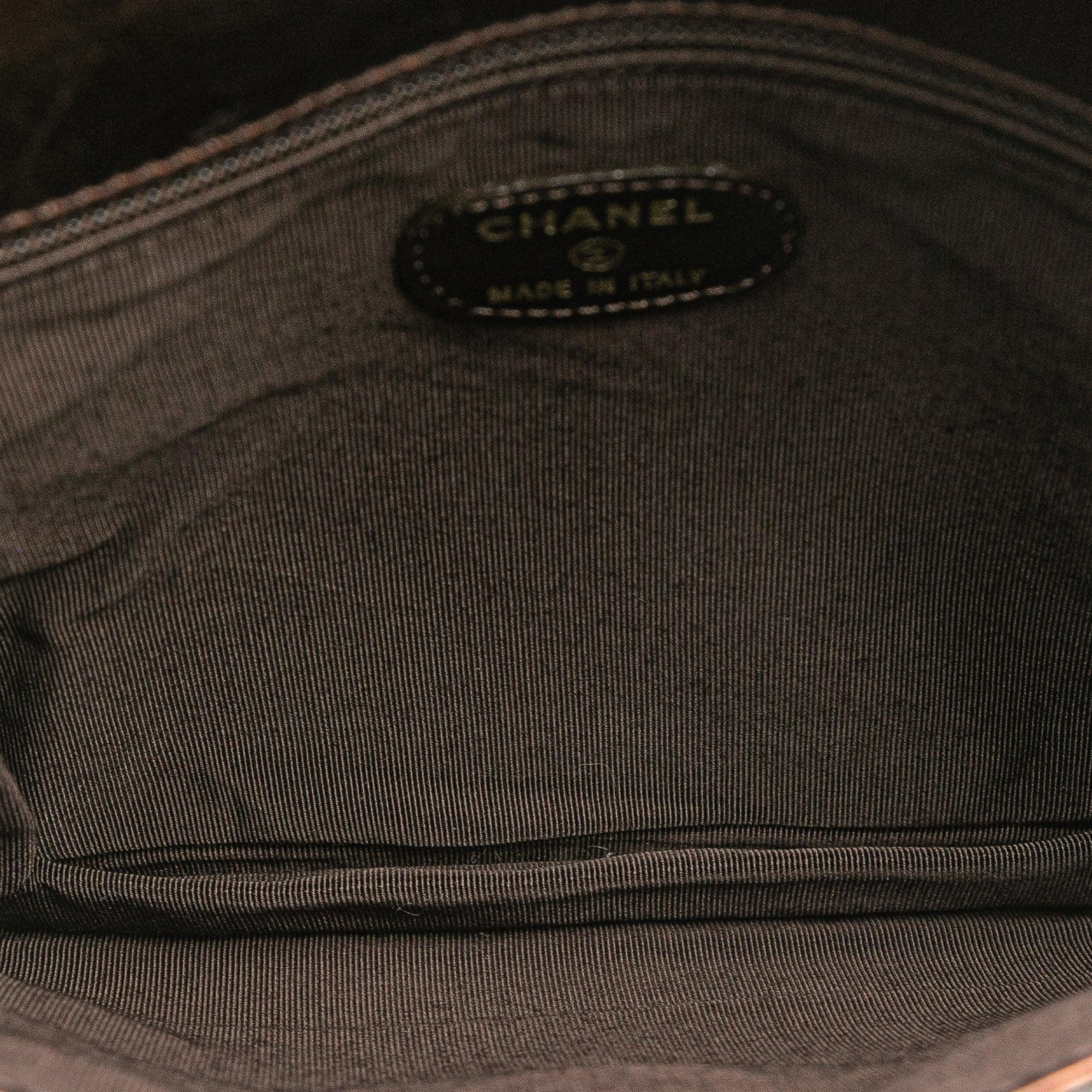 Product Details: Brown Chanel Metallic Lambskin Flap Crossbody. This crossbody bag features a leather body, a flat leather strap, a front flap with a magnetic closure, and an interior zip pocket. 7.9" L x 7.7" W x 0.4" D. Serial number 5866421.