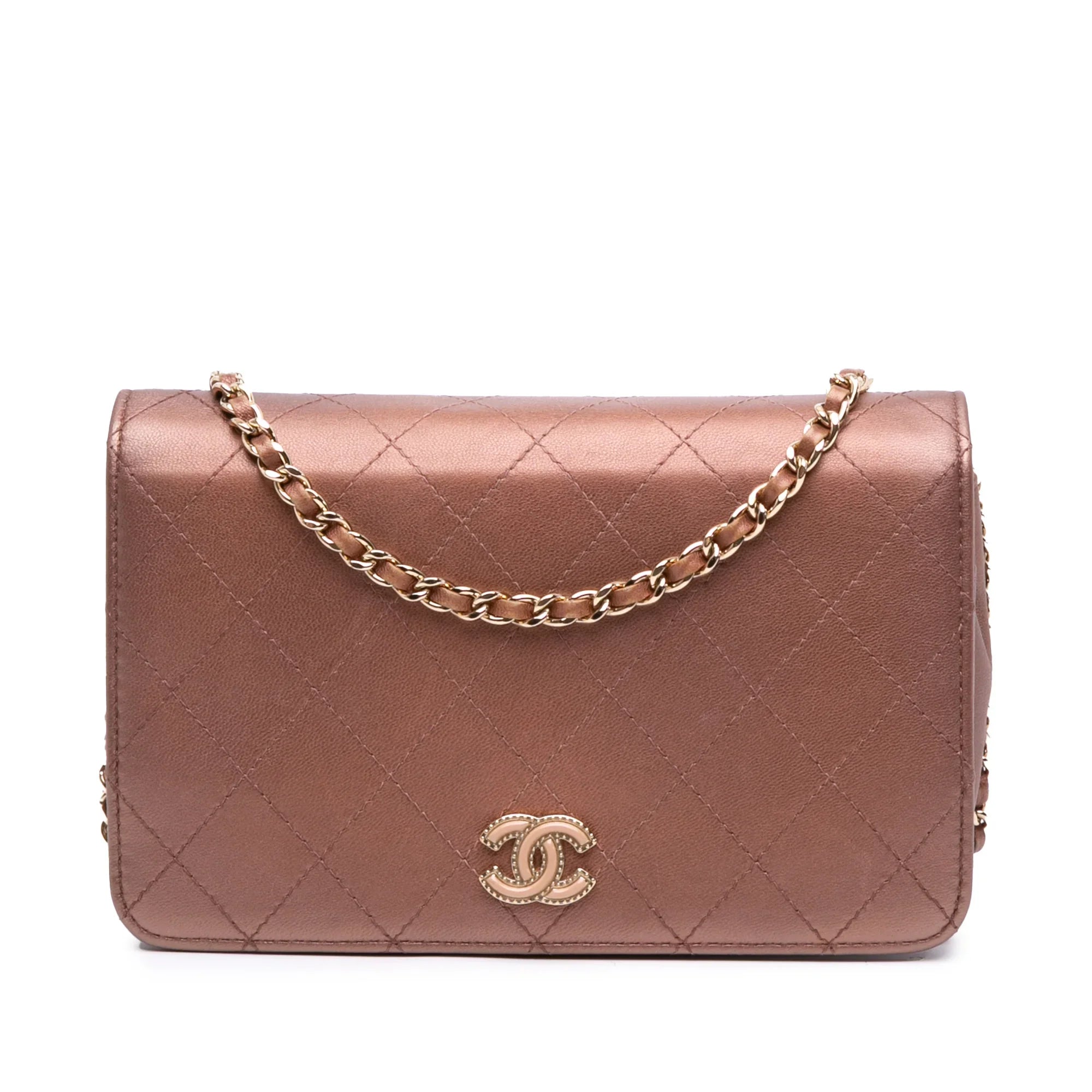 Brown Chanel Quilted Metallic Lambskin Enamel CC Wallet On Chain Crossbody Bag