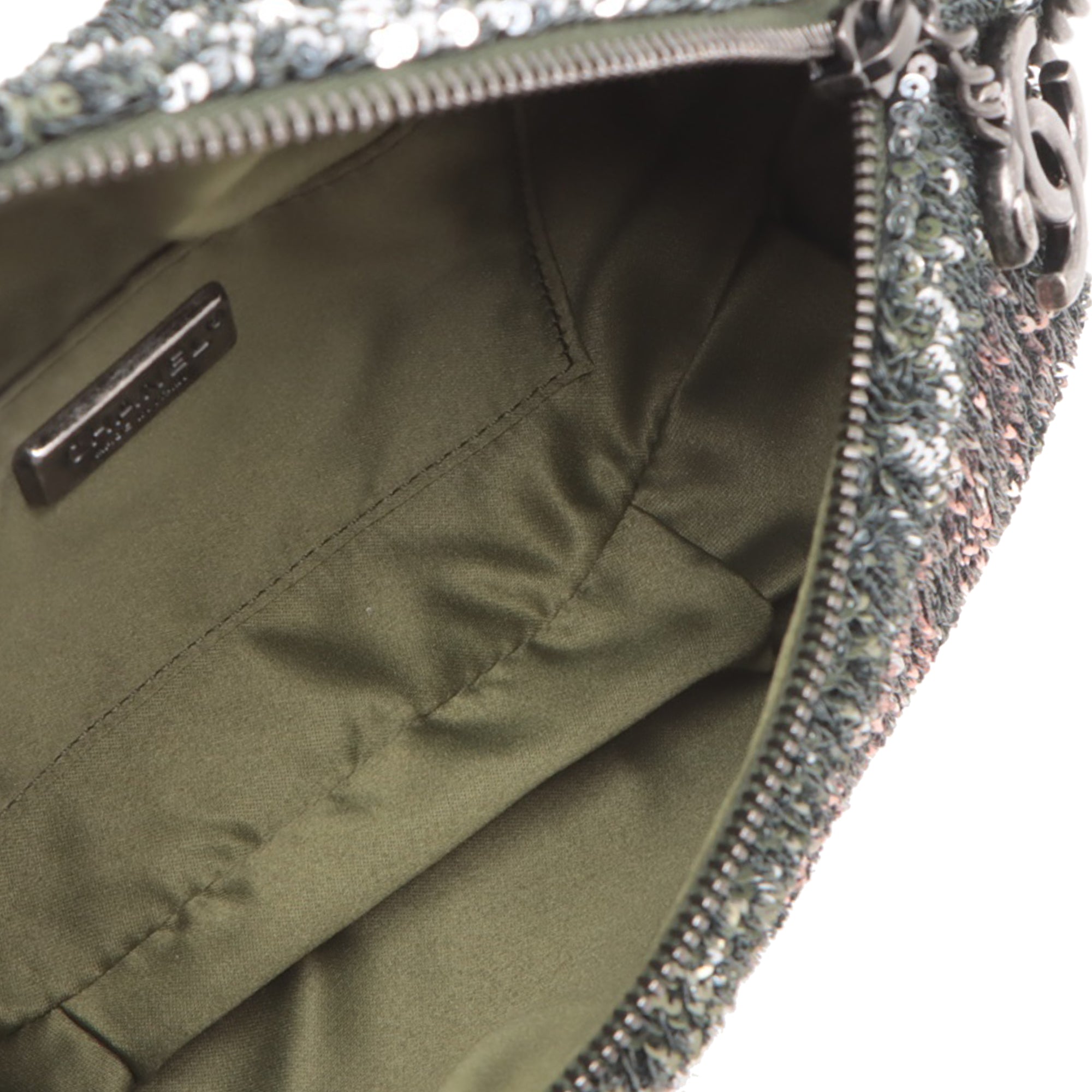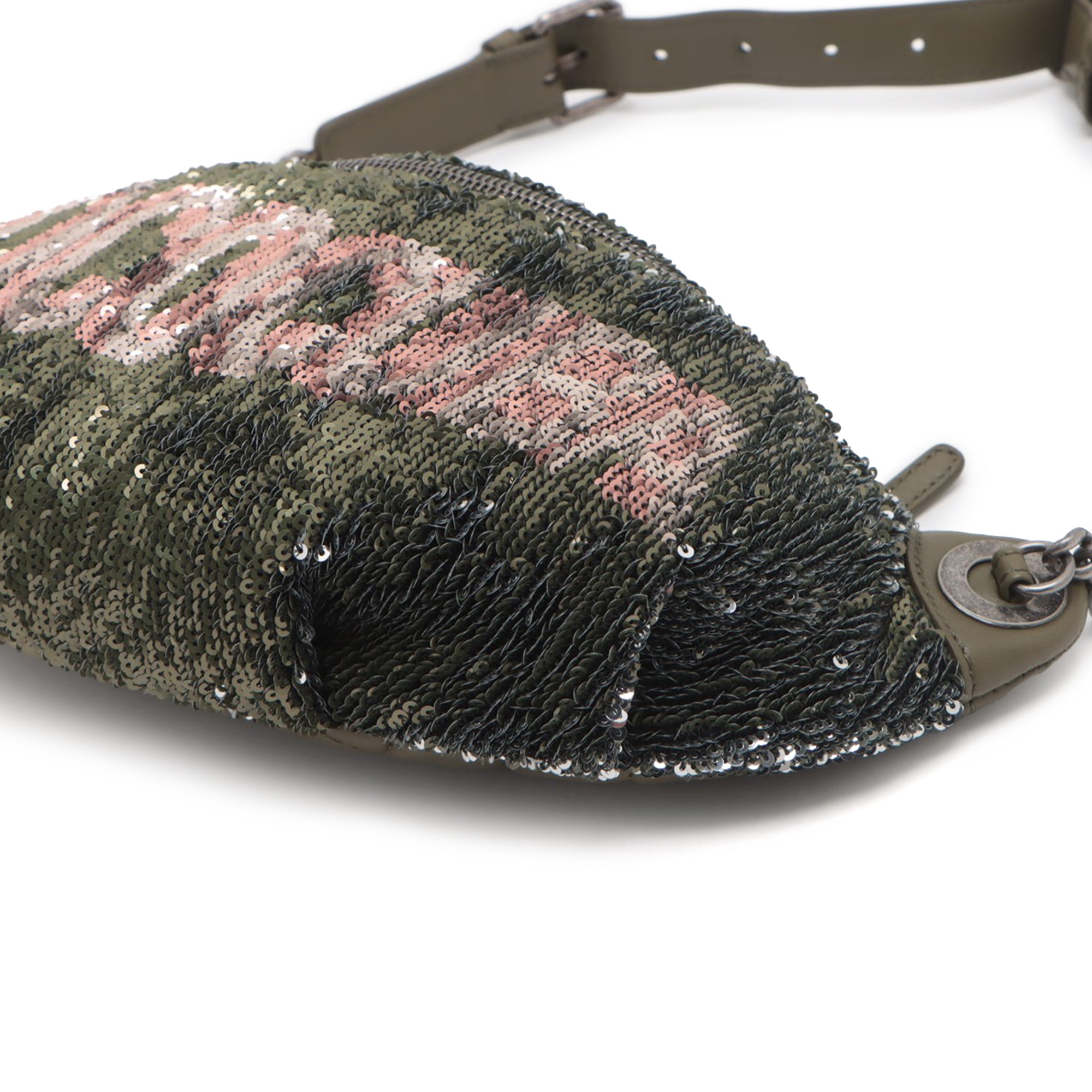 Product Details: Brown Chanel Sequin and Quilted Lambskin Coco Cuba Waist Bag. The Cuba Waist Bag features a sequin and lambskin leather body, a front and back zip closure, an adjustable flat leather strap, and an interior slip pocket. 4.7" L x 11.2" W x 3" D. Serial number 23345177.