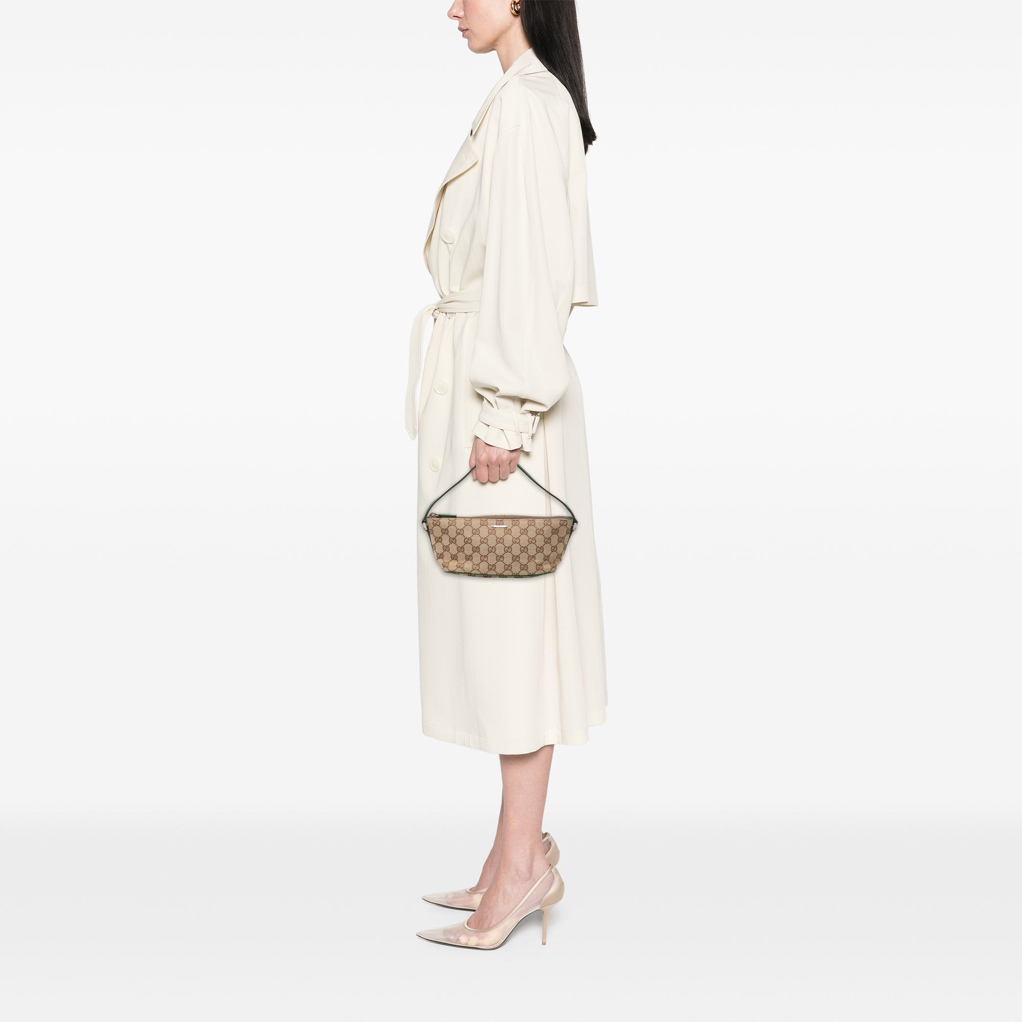Tan Gucci GG Canvas Boat Shoulder Bag