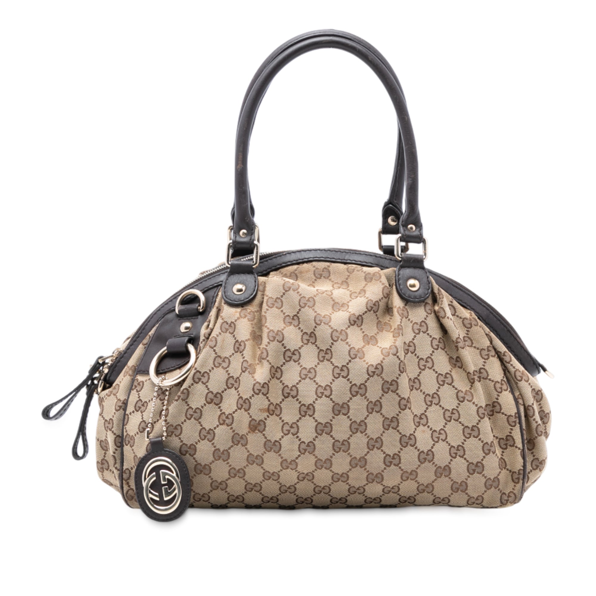 Please note this is a pre-owned item that may display signs of wear consistent with the condition listed above and shown in photos. Designer Revival guarantees this is an authentic Brown Gucci GG Canvas Sukey Satchel or 100% of your money back. Learn more about our authentication process.