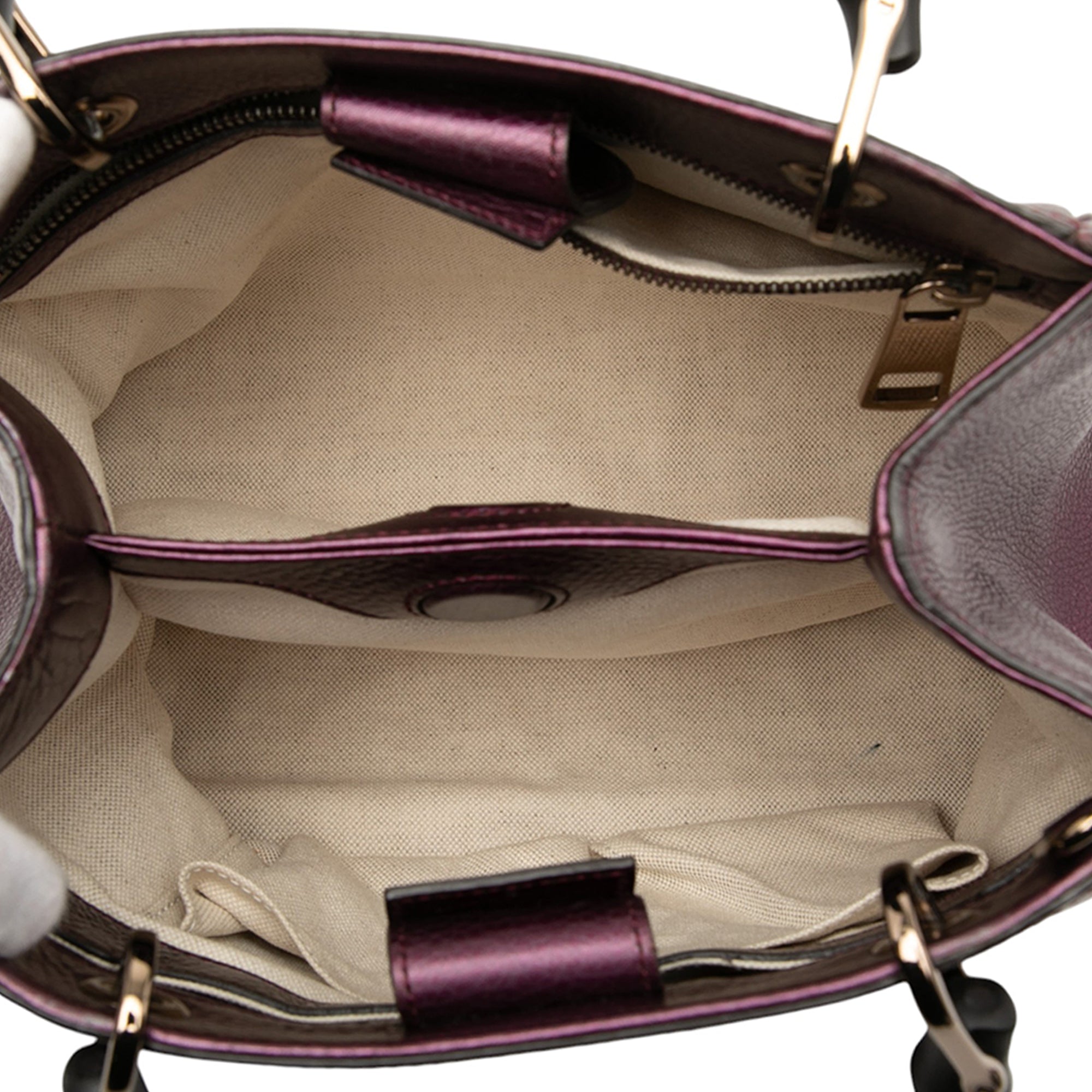 Purple Gucci Small Metallic Calfskin Bamboo Shopper Satchel
