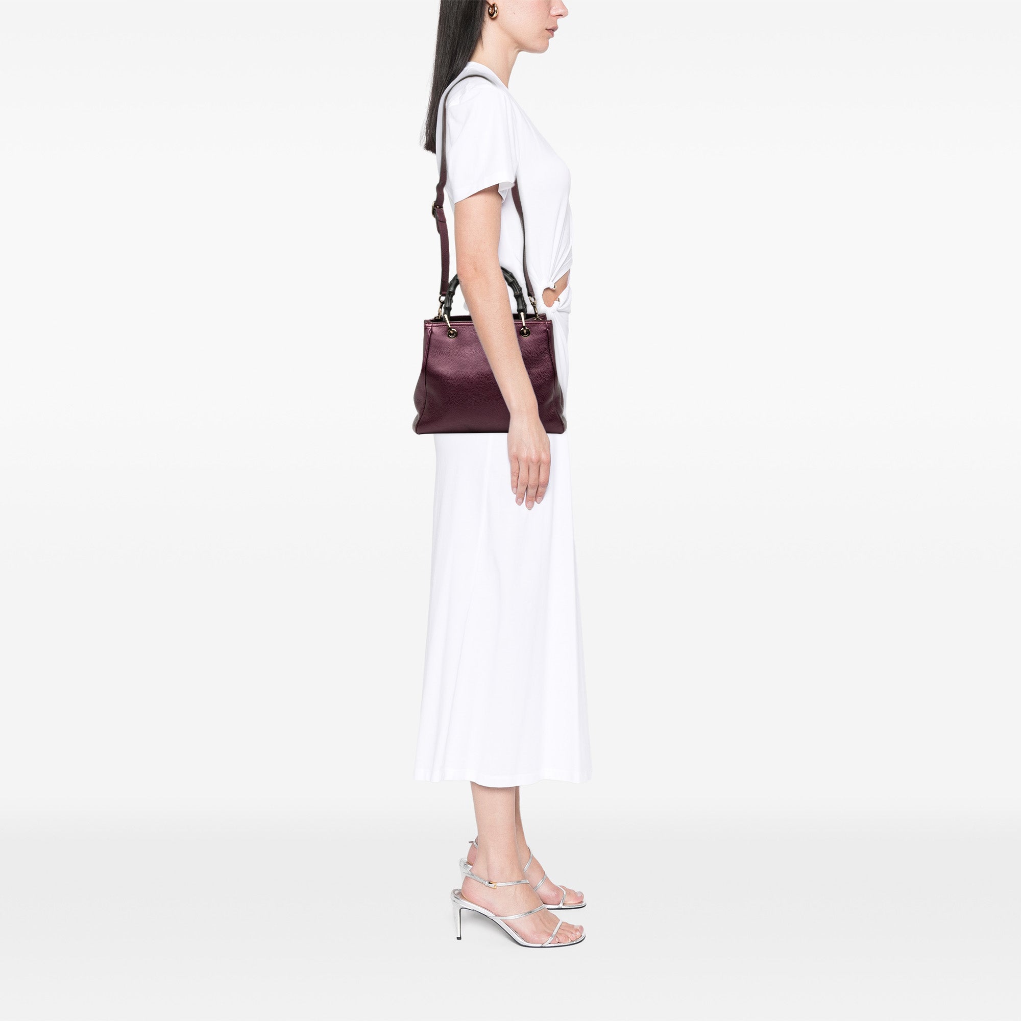 Please note this is a pre-owned item that may display signs of wear consistent with the condition listed above and shown in photos. Designer Revival guarantees this is an authentic Purple Gucci Small Metallic Calfskin Bamboo Shopper Satchel or 100% of your money back. Learn more about our authentication process.