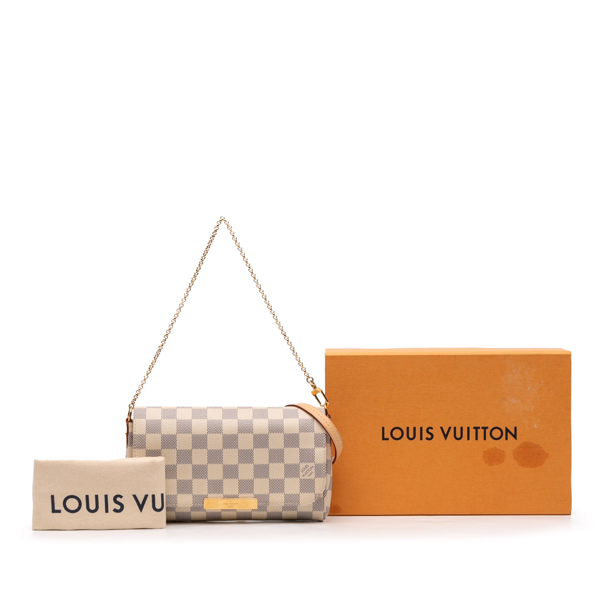 Please note this is a pre-owned item that may display signs of wear consistent with the condition listed above and shown in photos. Designer Revival guarantees this is an authentic White Louis Vuitton Damier Azur Favorite PM Satchel or 100% of your money back. Learn more about our authentication process.