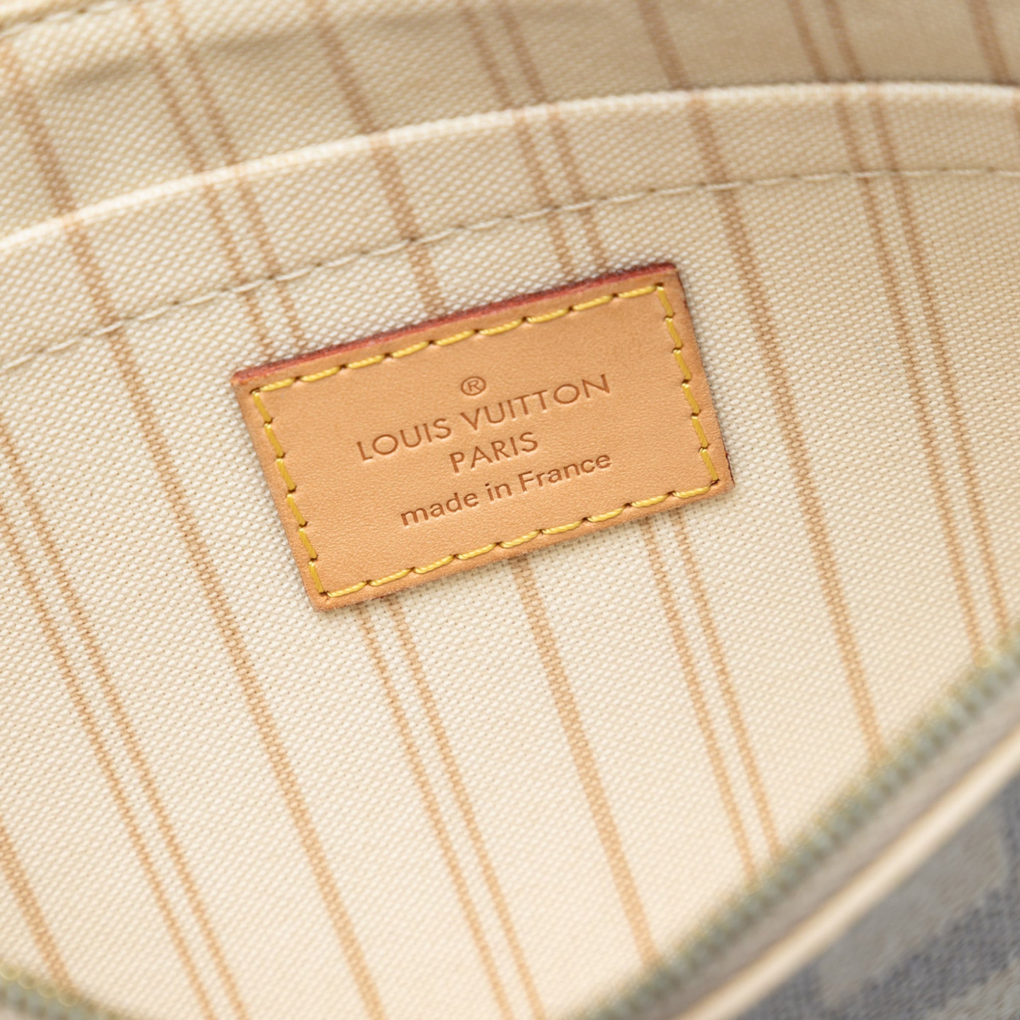 Please note this is a pre-owned item that may display signs of wear consistent with the condition listed above and shown in photos. Designer Revival guarantees this is an authentic White Louis Vuitton Damier Azur Neverfull MM Pouch or 100% of your money back. Learn more about our authentication process.