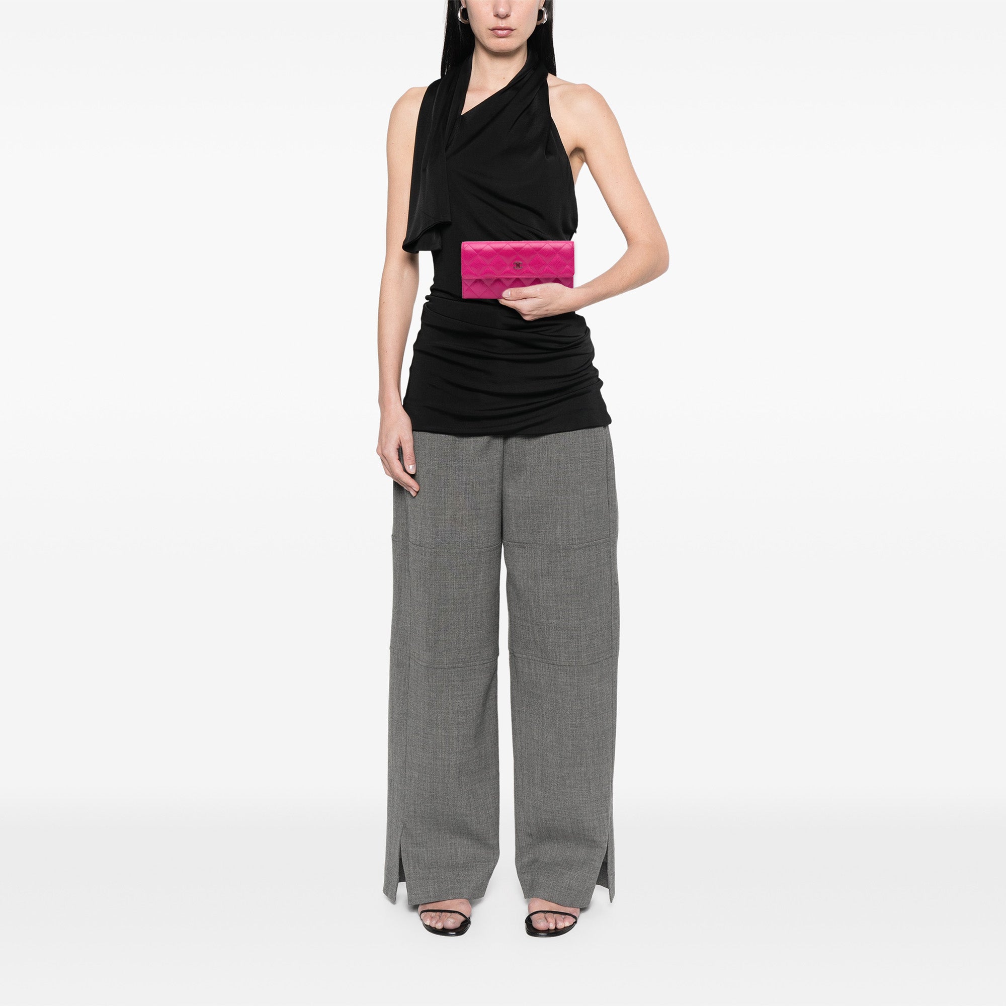 Pink Chanel CC Quilted Caviar Long Wallet - Designer Revival Pink Chanel CC Quilted Caviar Long Wallet - Designer Revival