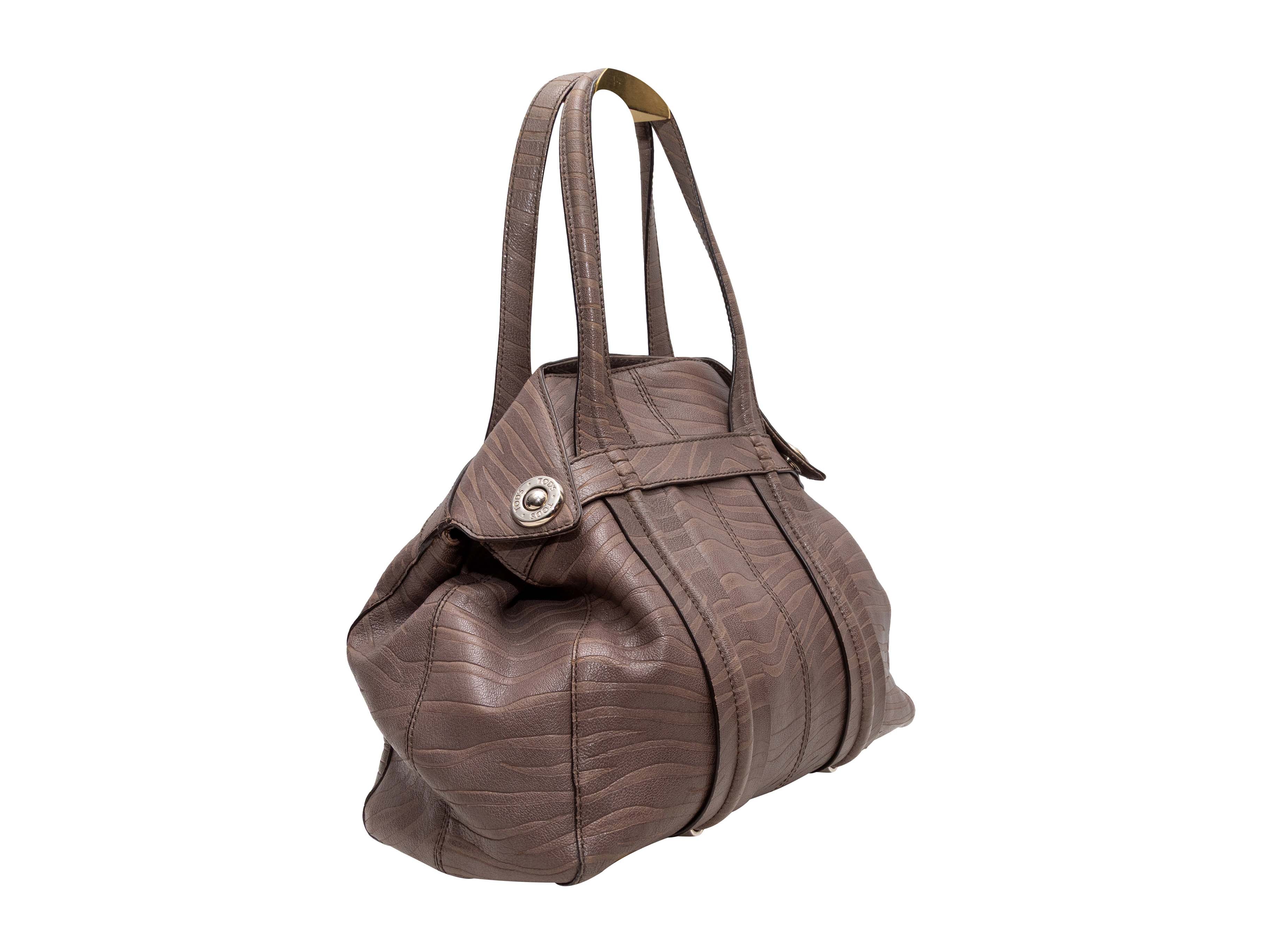 Brown Tod's Zebra Embossed Leather Handbag