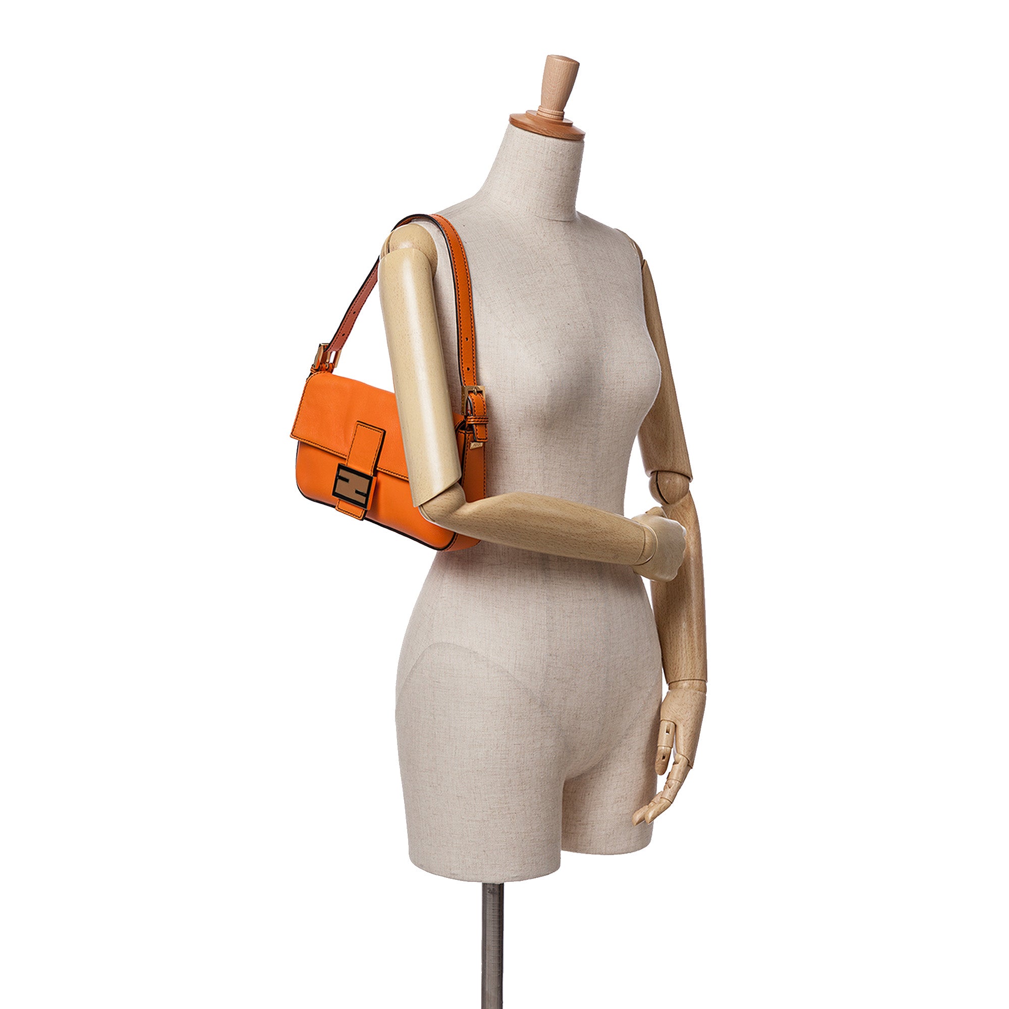 Please note this is a pre-owned item that may display signs of wear consistent with the condition listed above and shown in photos. Designer Revival guarantees this is an authentic Orange Fendi Leather Baguette Satchel or 100% of your money back. Learn more about our authentication process.