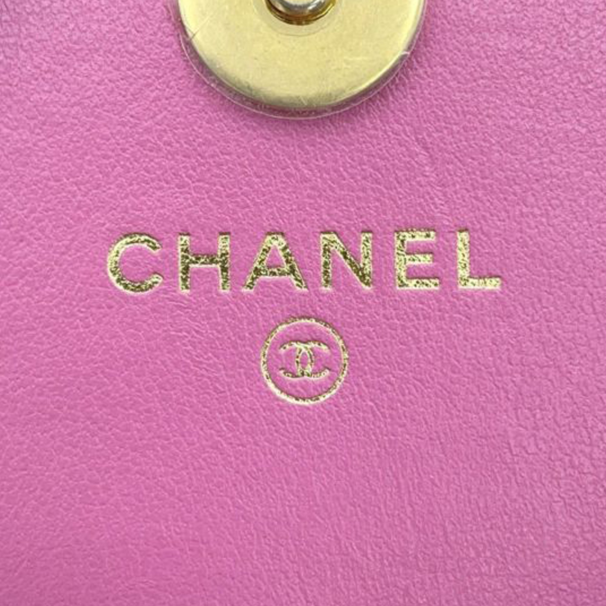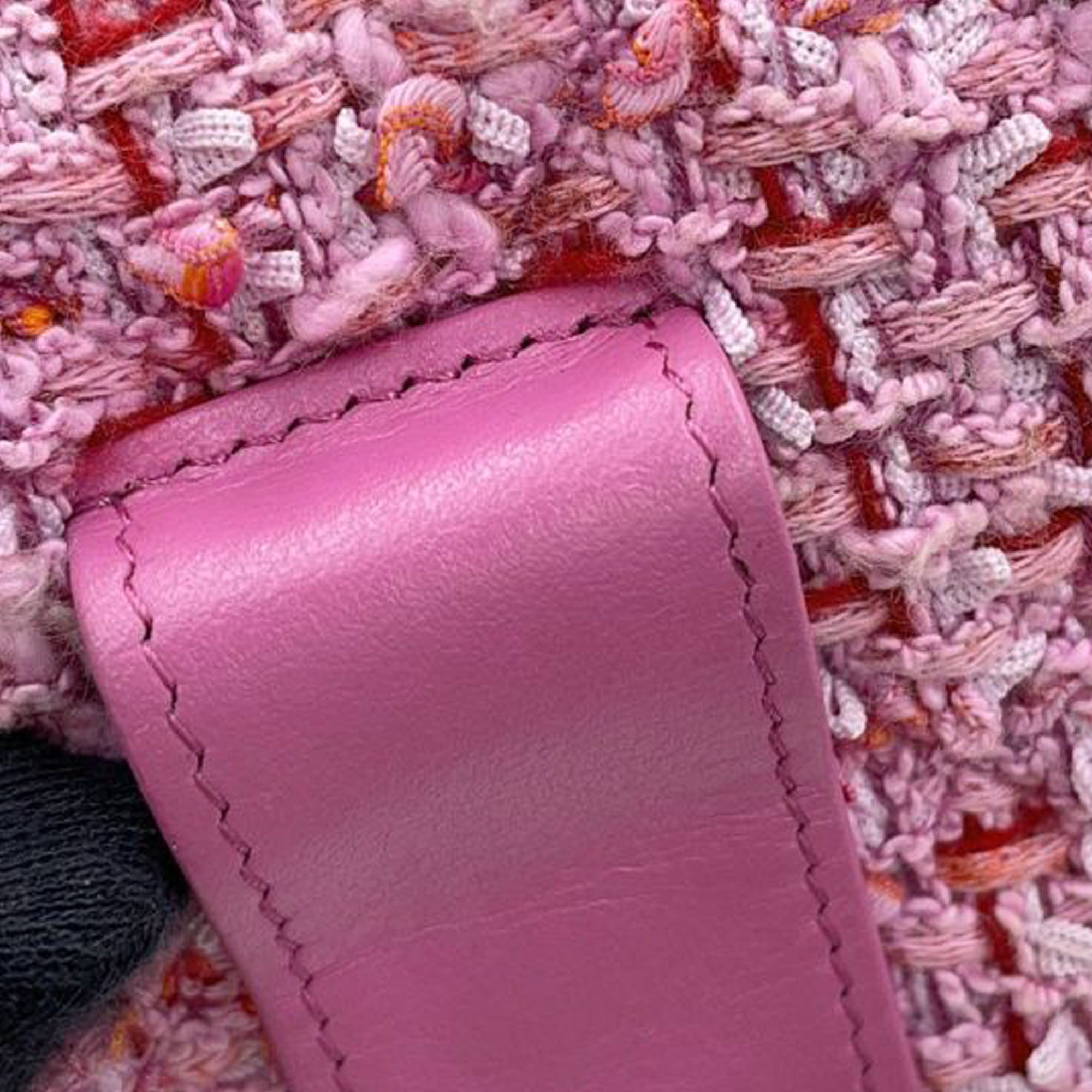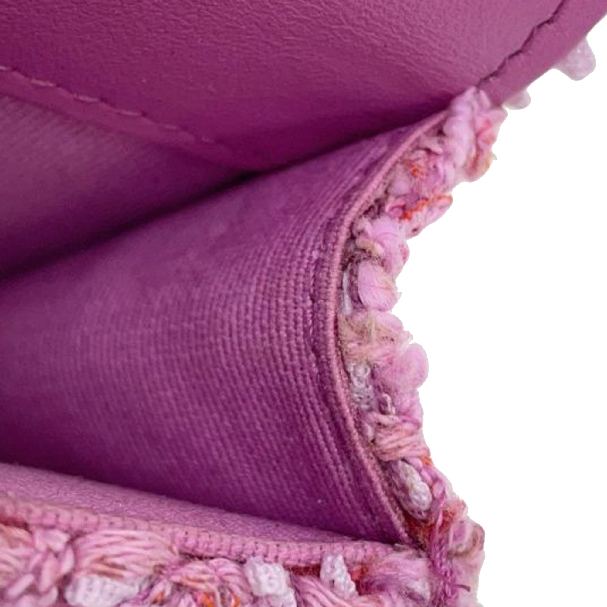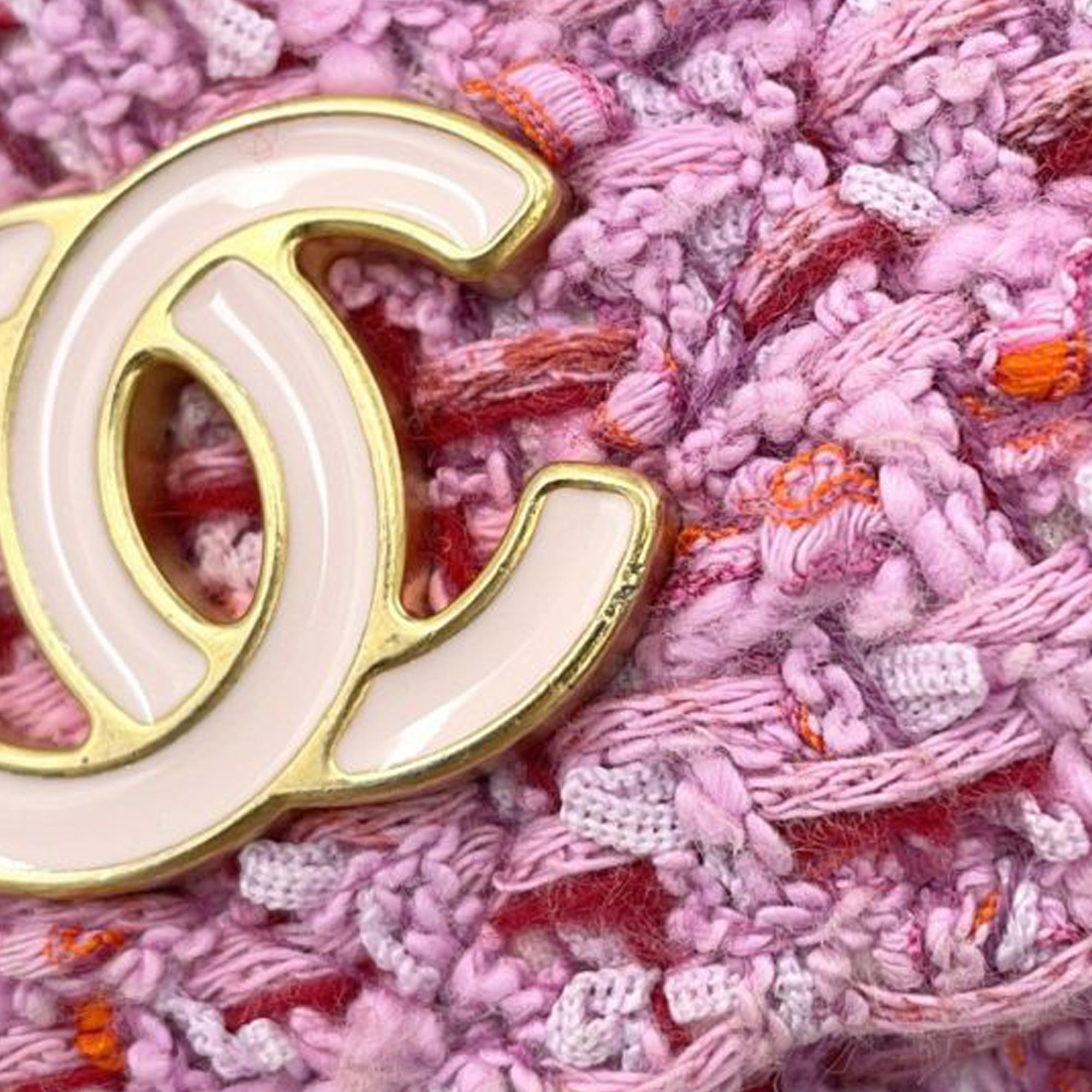 Pink Chanel CC Quilted Tweed Flap Chain Belt Bag