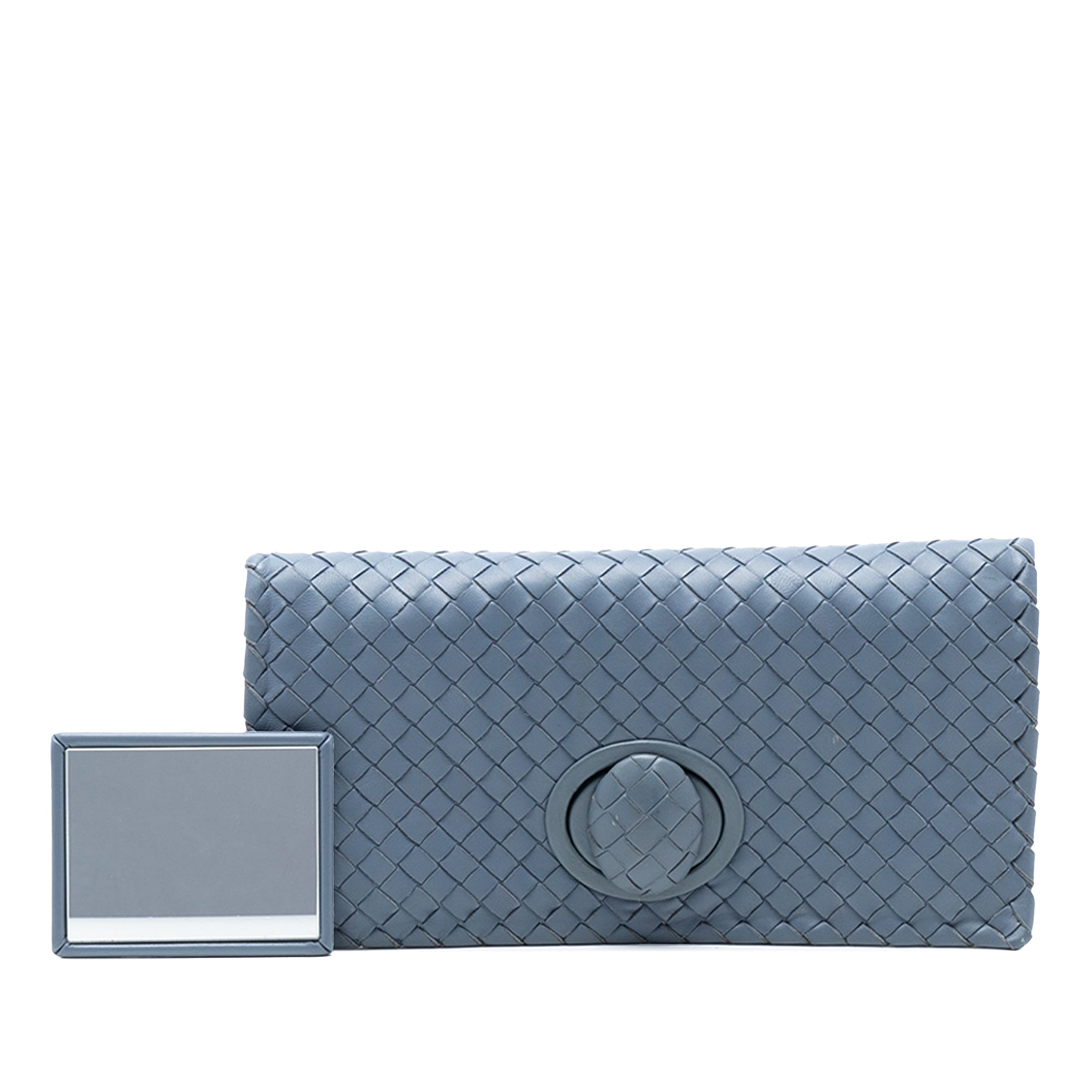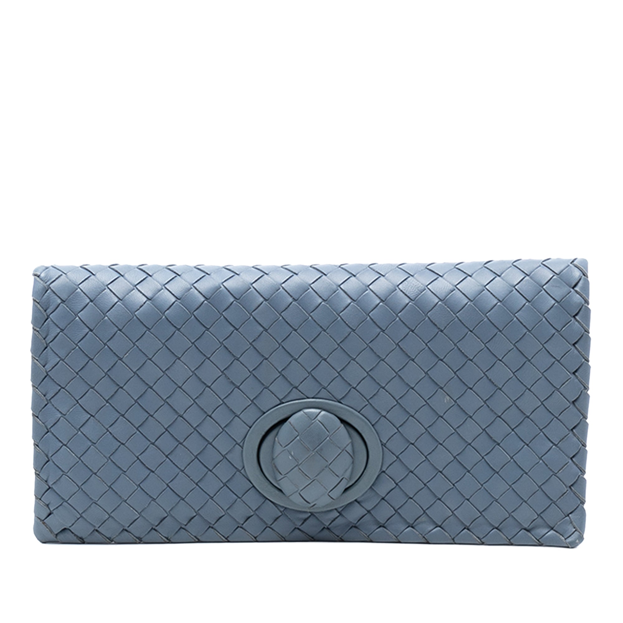 Blue Bottega Veneta Nappa Intrecciato Turn Lock Clutch