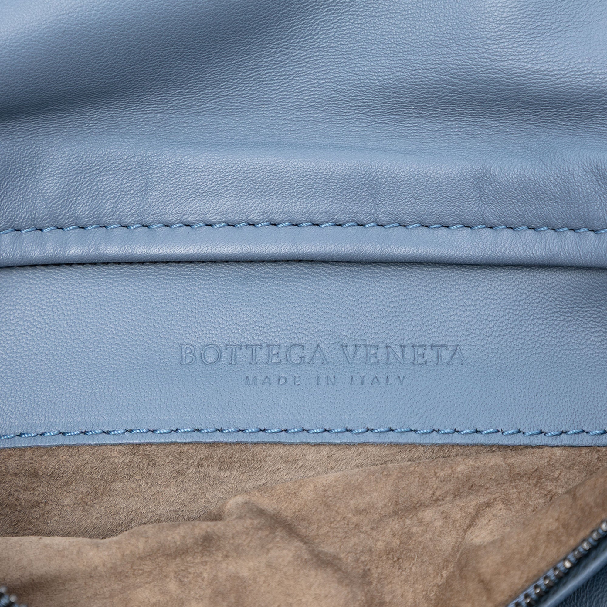 Please note this is a pre-owned item that may display signs of wear consistent with the condition listed above and shown in photos. Designer Revival guarantees this is an authentic Blue Bottega Veneta Nappa Intrecciato Turn Lock Clutch or 100% of your money back. Learn more about our authentication process.