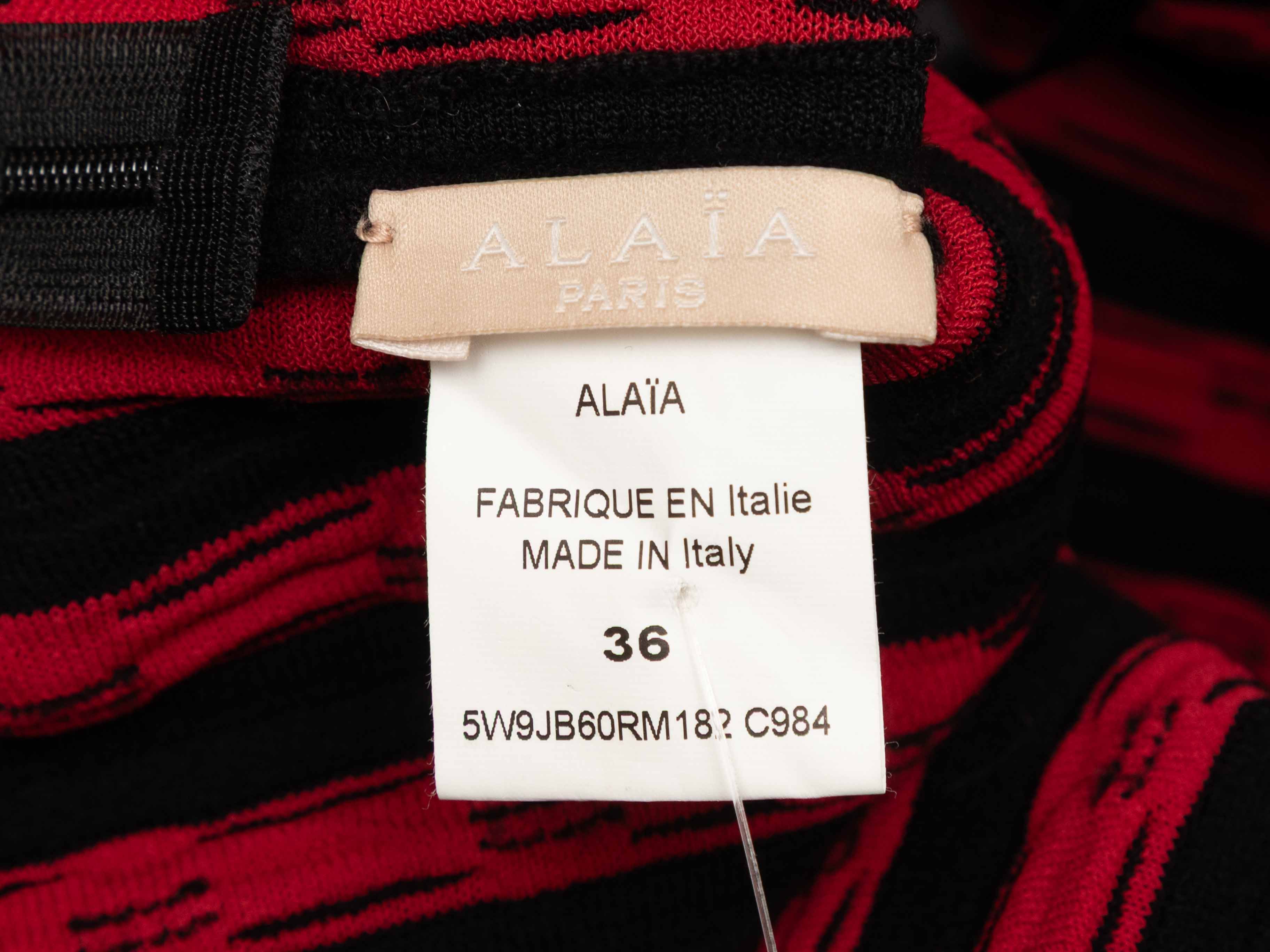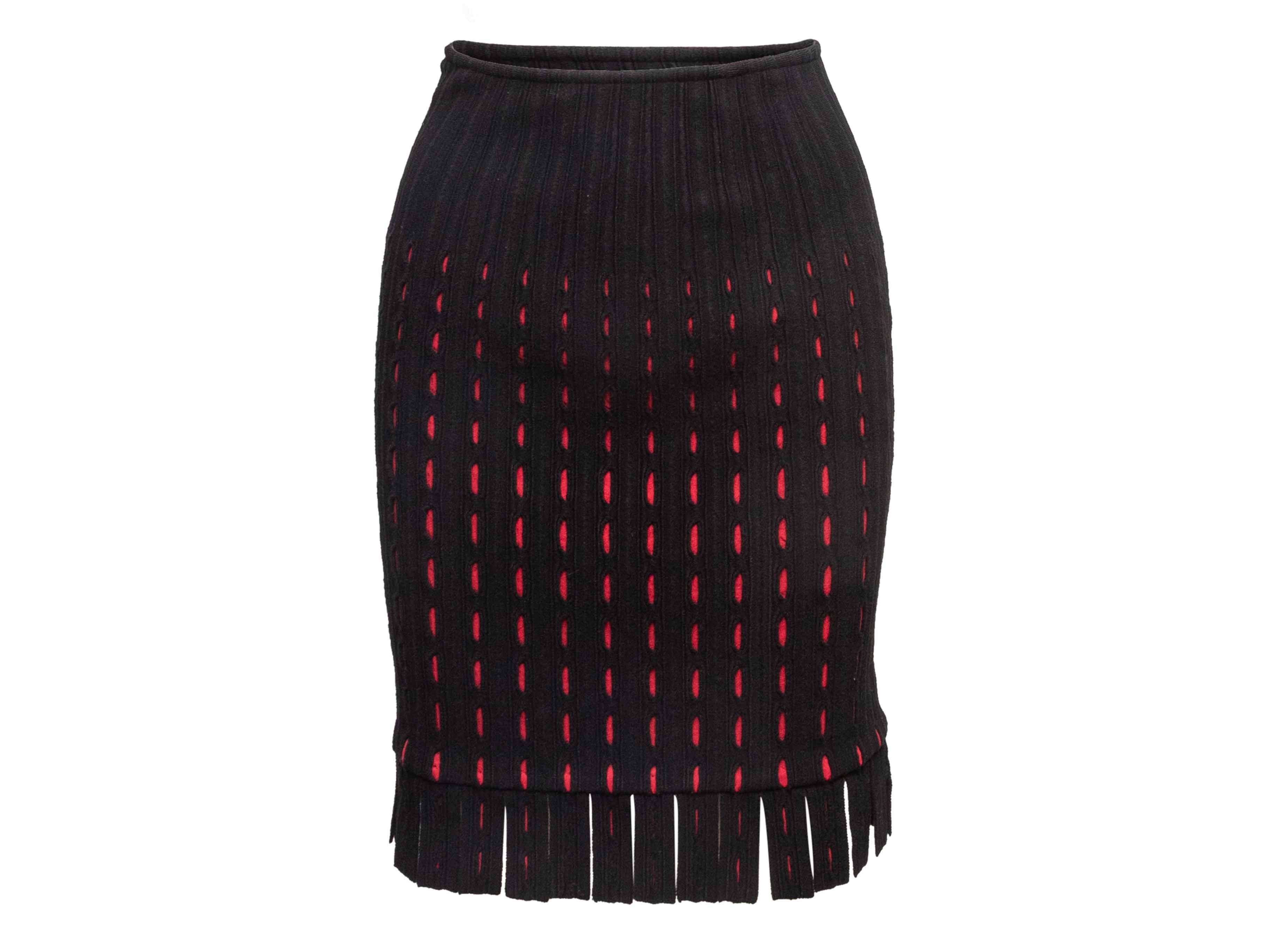 Black & Red Alaia Fringe-Trimmed Knit Bodycon Skirt Size IT 36