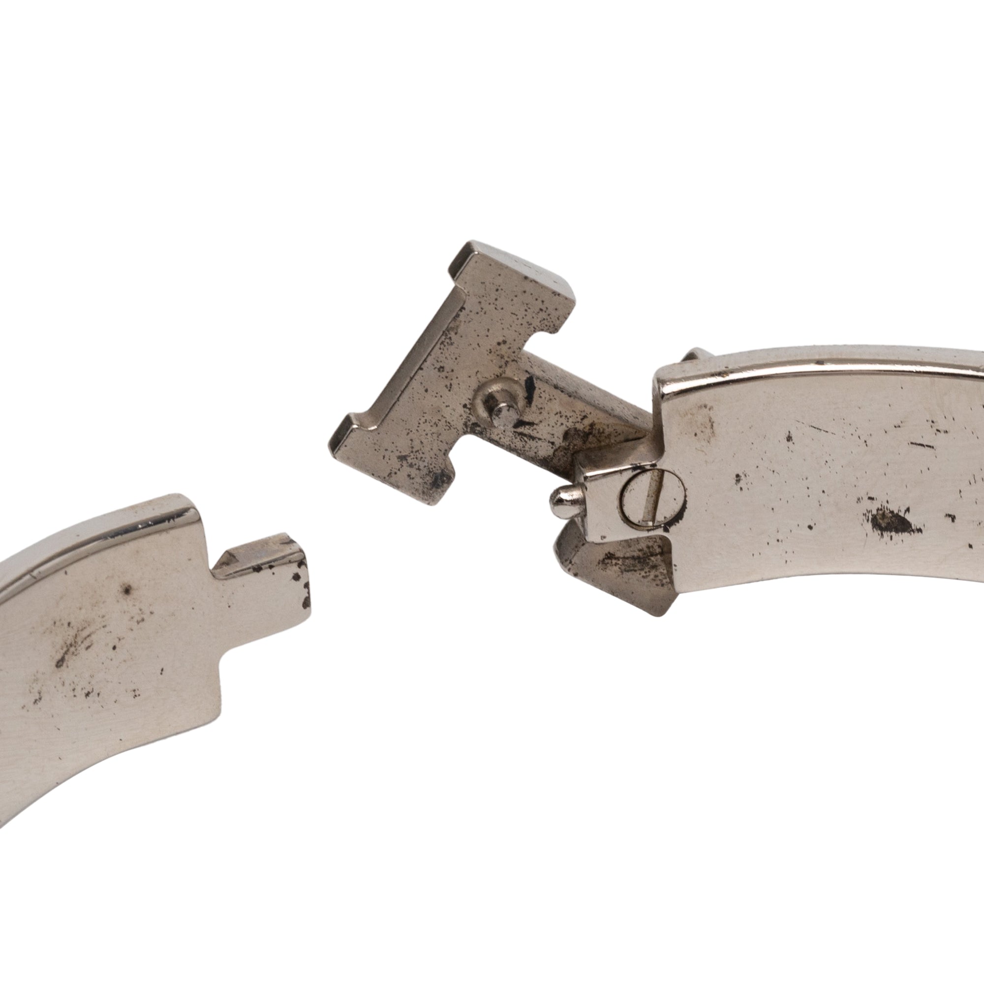 Product Details: Black Hermès Narrow Enamel Clic H Bracelet PM. The Clic H bracelet features a palladium plated metal and enamel body, and an H toggle clasp. 6.6" L x 2.3" W x 0" D.