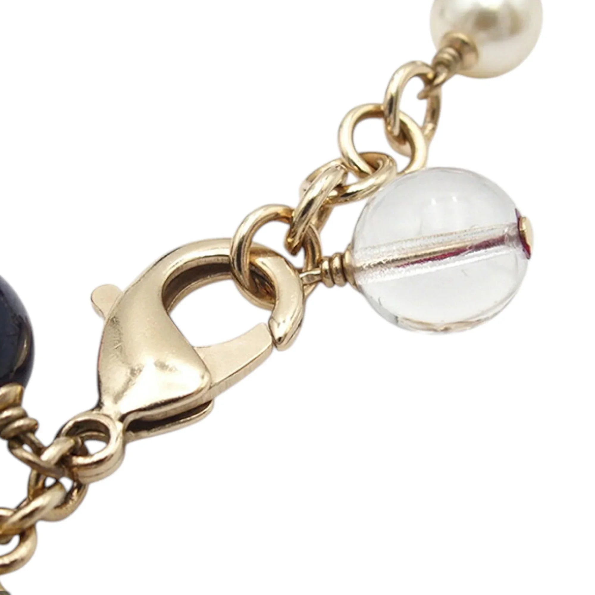 Gold Chanel CC Gold Plated Faux Pearl Beaded Bracelet