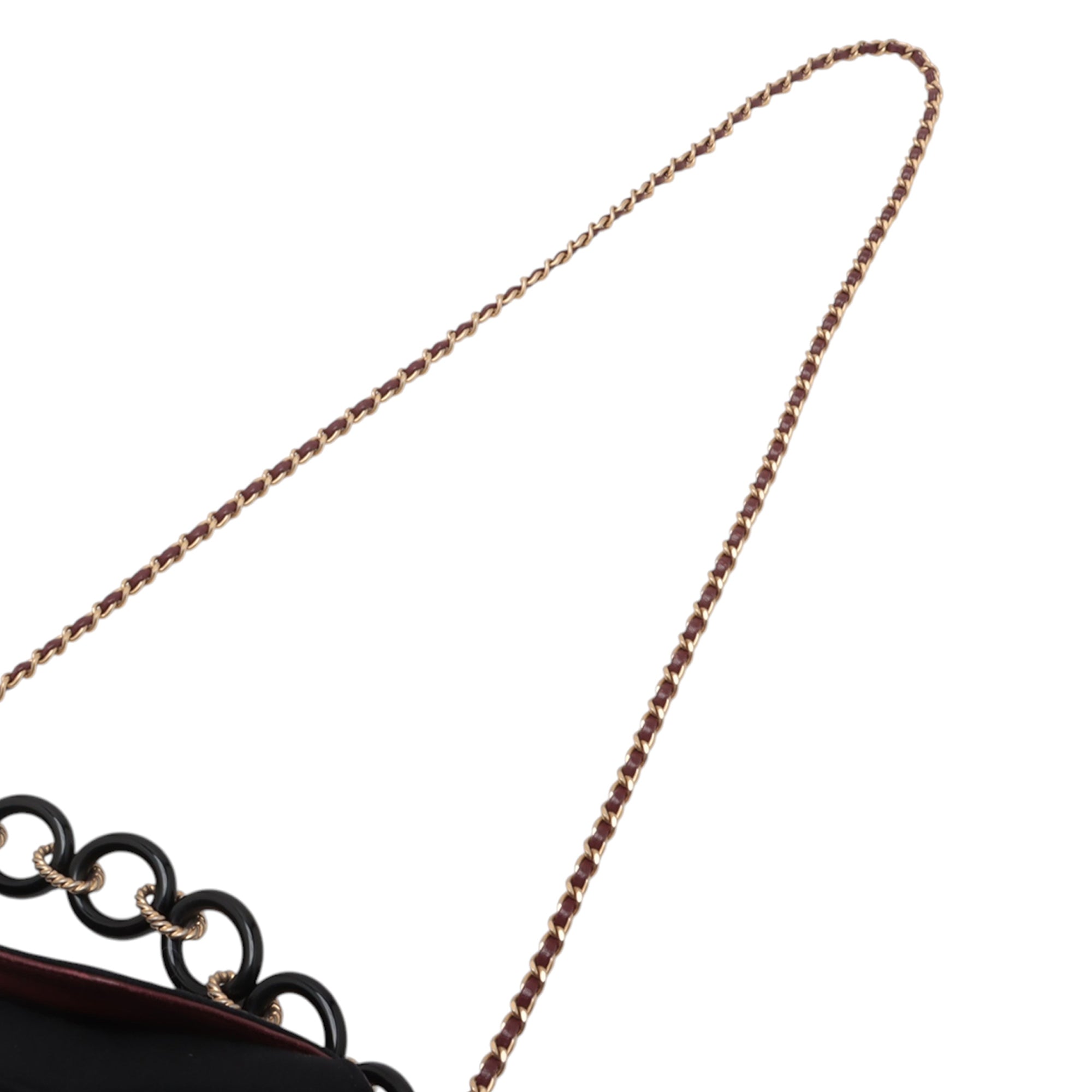Product Details: Black Chanel Paris Hamburg Quilted Wool Coco Sailor Charms Bucket Bag. This bucket bag features a quilted wool body with lambskin leather trim, a resin chain link handle, a leather woven shoulder strap, a fold over flap with magnetic snap closure, and an interior slip pocket. 6.7" L x 6.1" W x 4.1" D, 8.5" drop. Serial number 25963603.