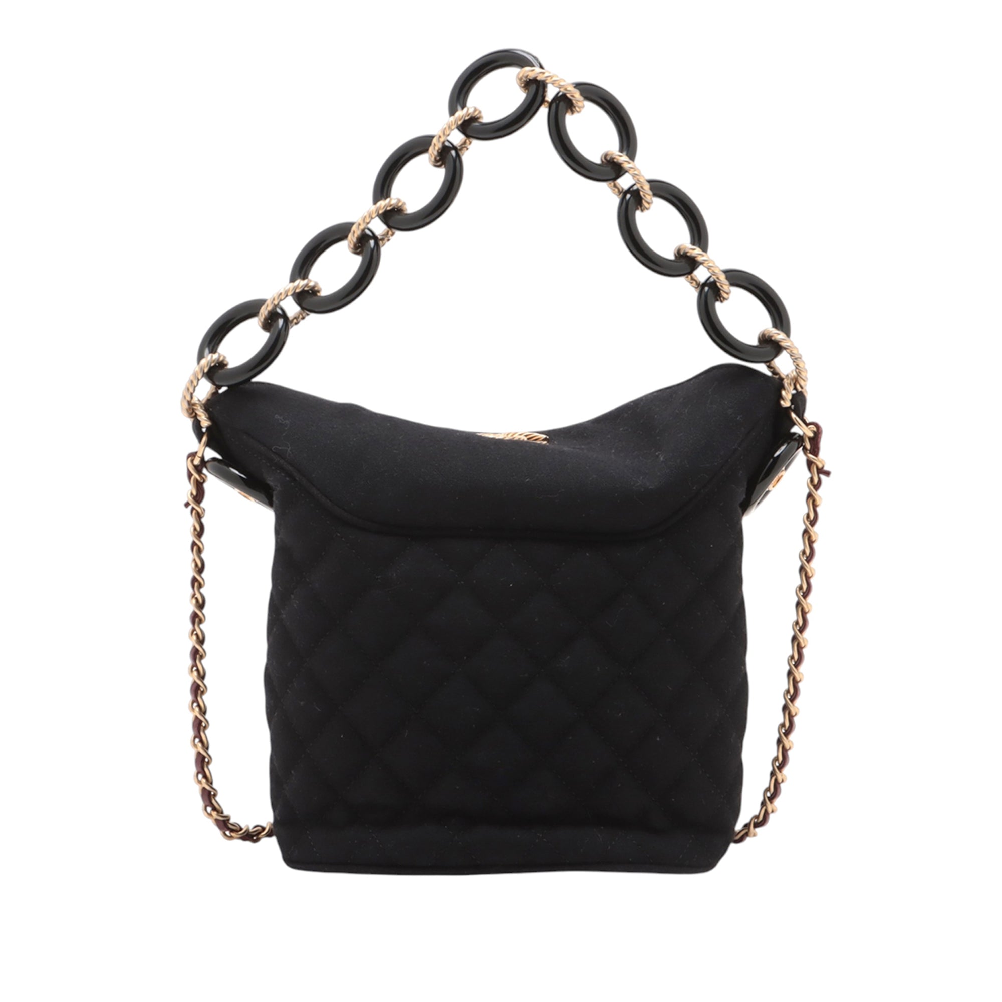 Black Chanel Paris Hamburg Quilted Wool Coco Sailor Charms Bucket Bag