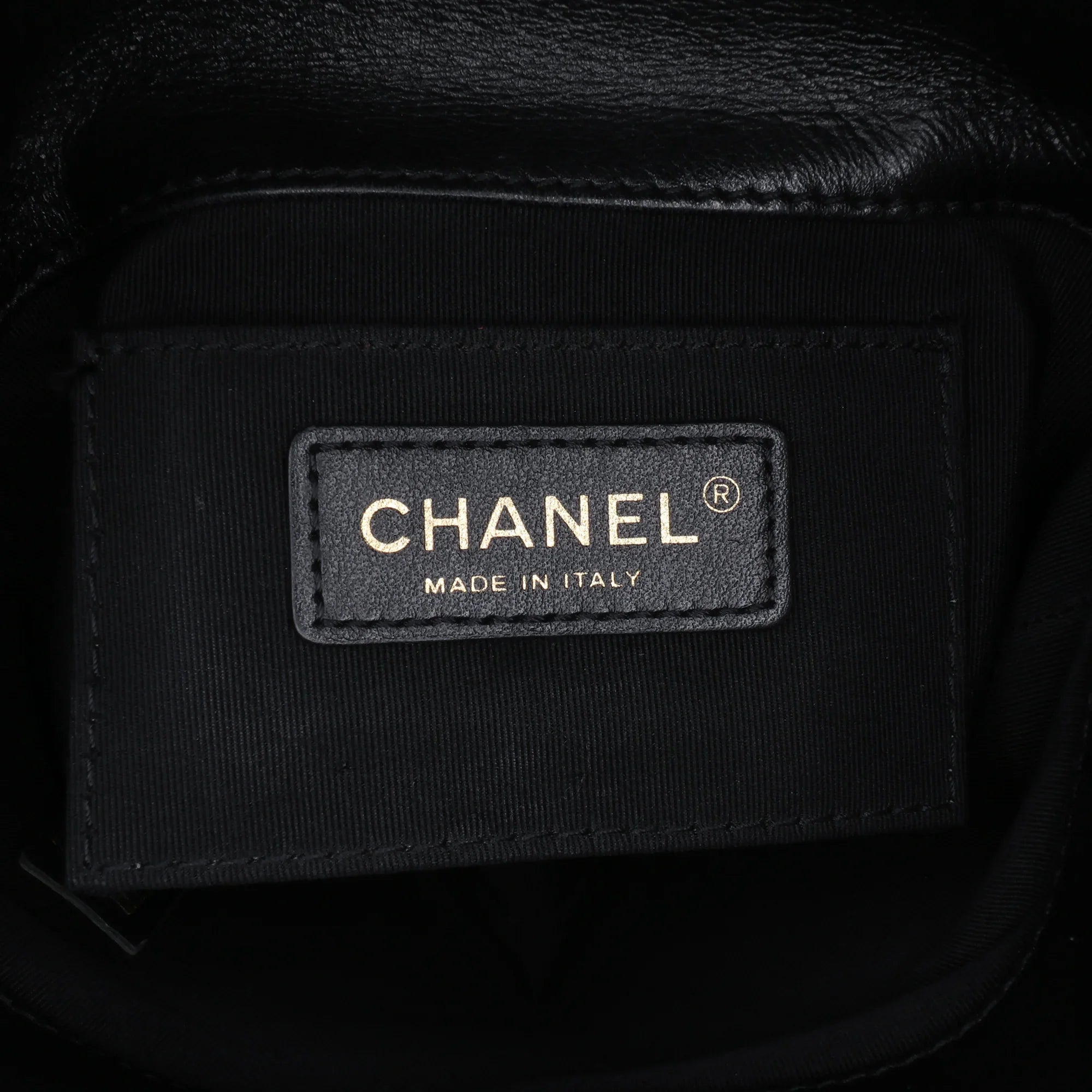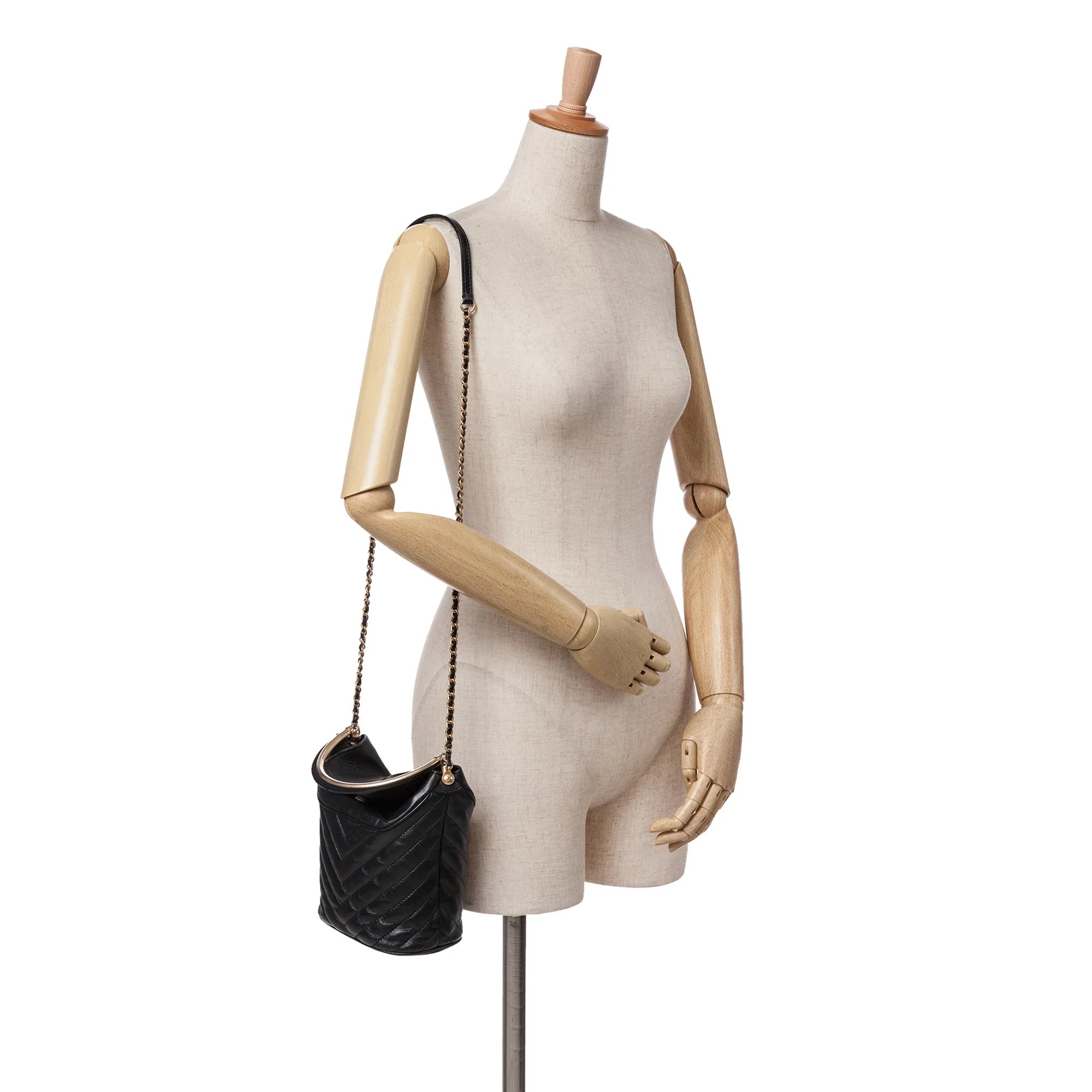Black Chanel Quilted Chevron Lambskin Handle with Chic Bucket Bag