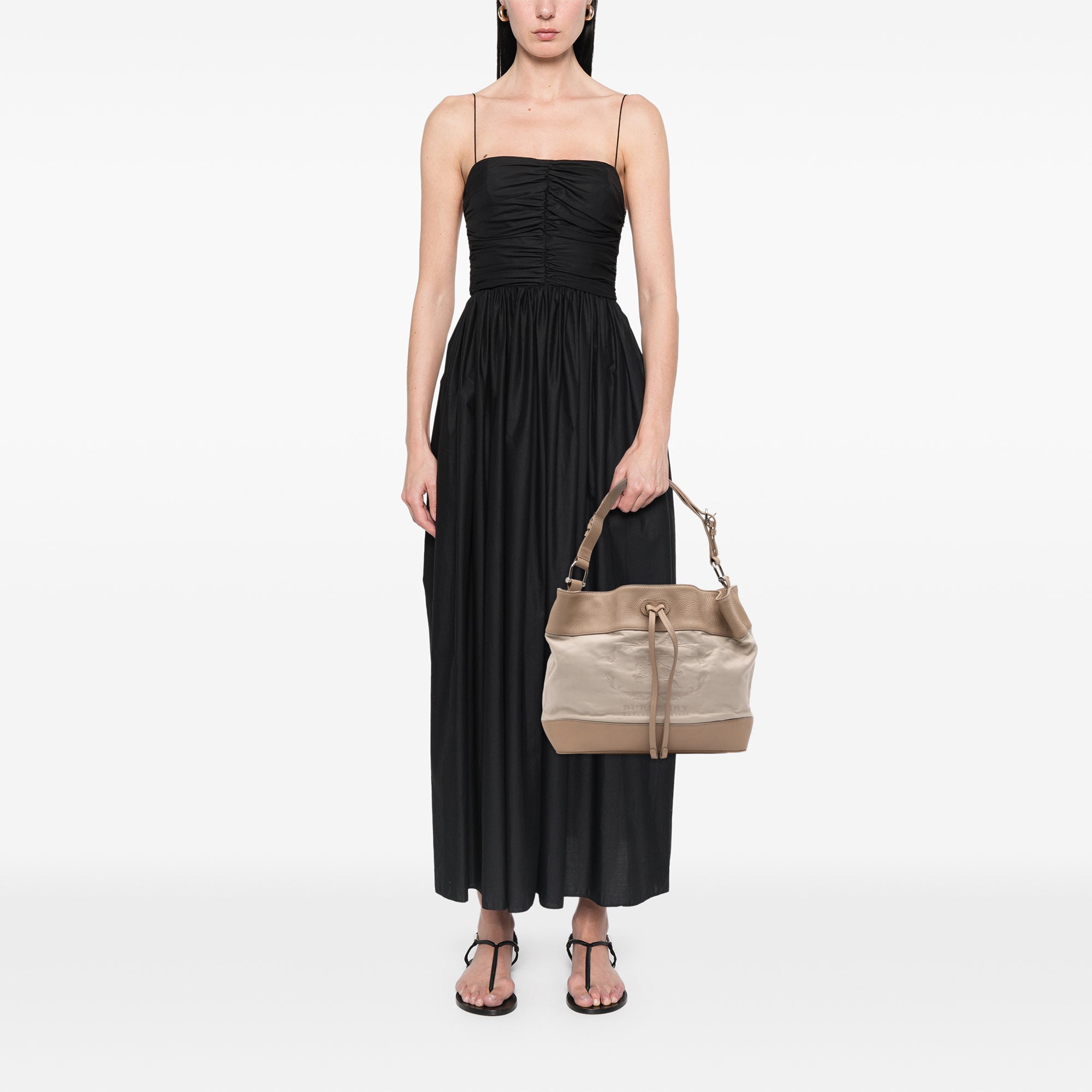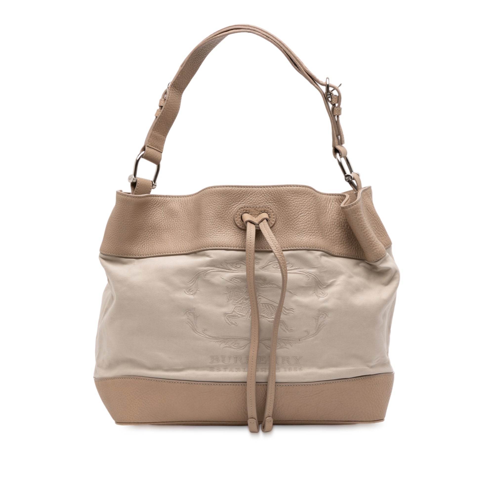 Brown Burberry Leather Trimmed Canvas Drawstring Bucket Bag