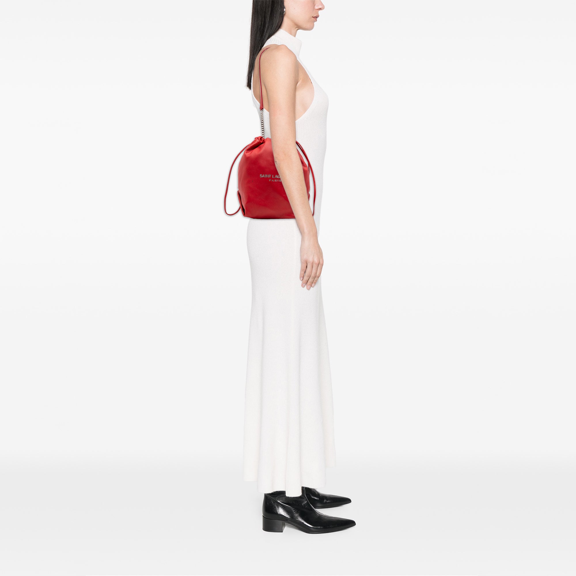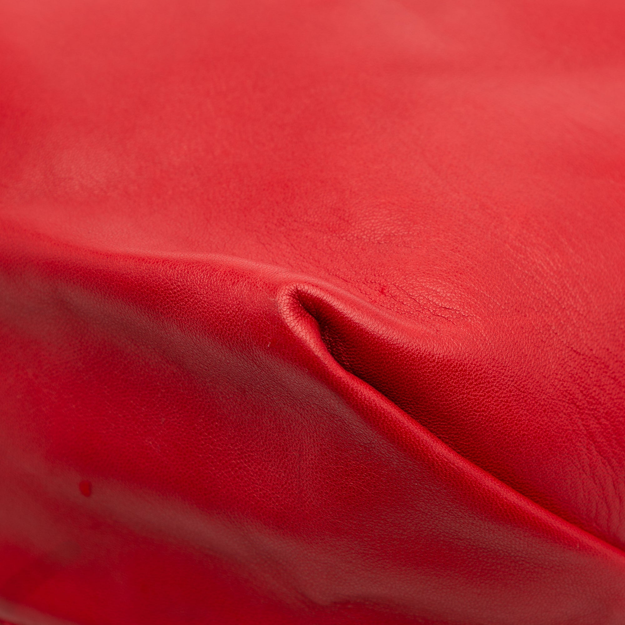 Red Saint Laurent Lambskin Teddy Drawstring Bucket Bag - Designer Revival Red Saint Laurent Lambskin Teddy Drawstring Bucket Bag - Designer Revival