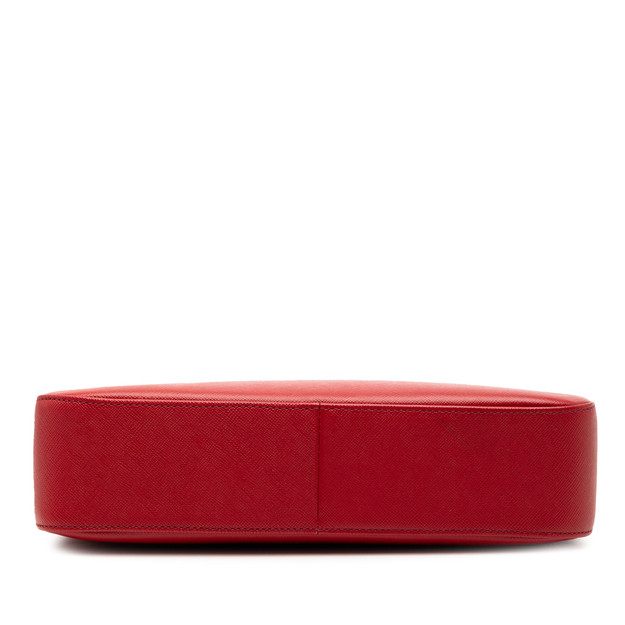 Product Details: Red Burberry Leather Shoulder Bag. This baguette features a leather body, a flat leather strap, and a top zip closure. 5.9" L x 10.2" W x 2.4" D, 7.3" drop.