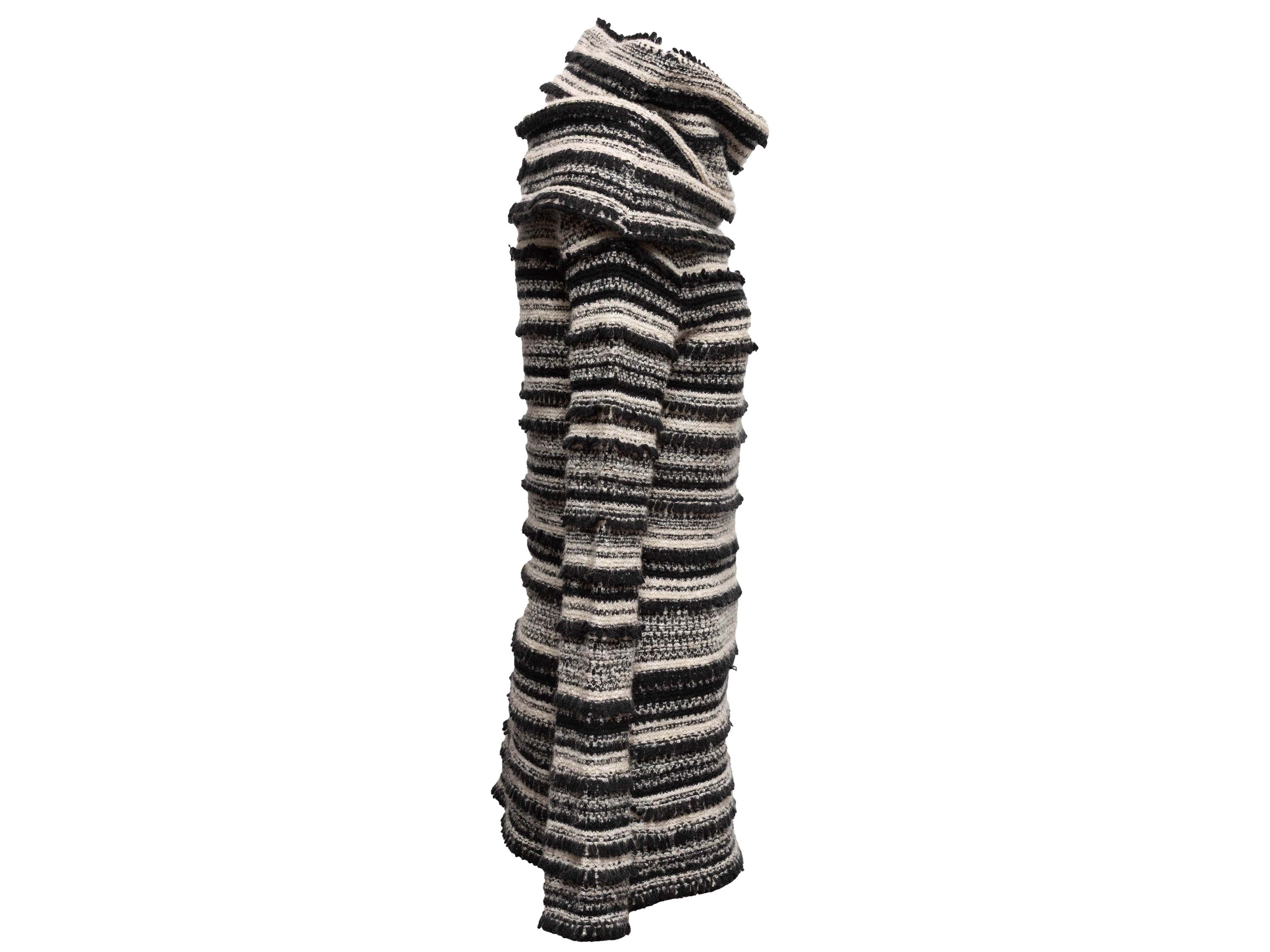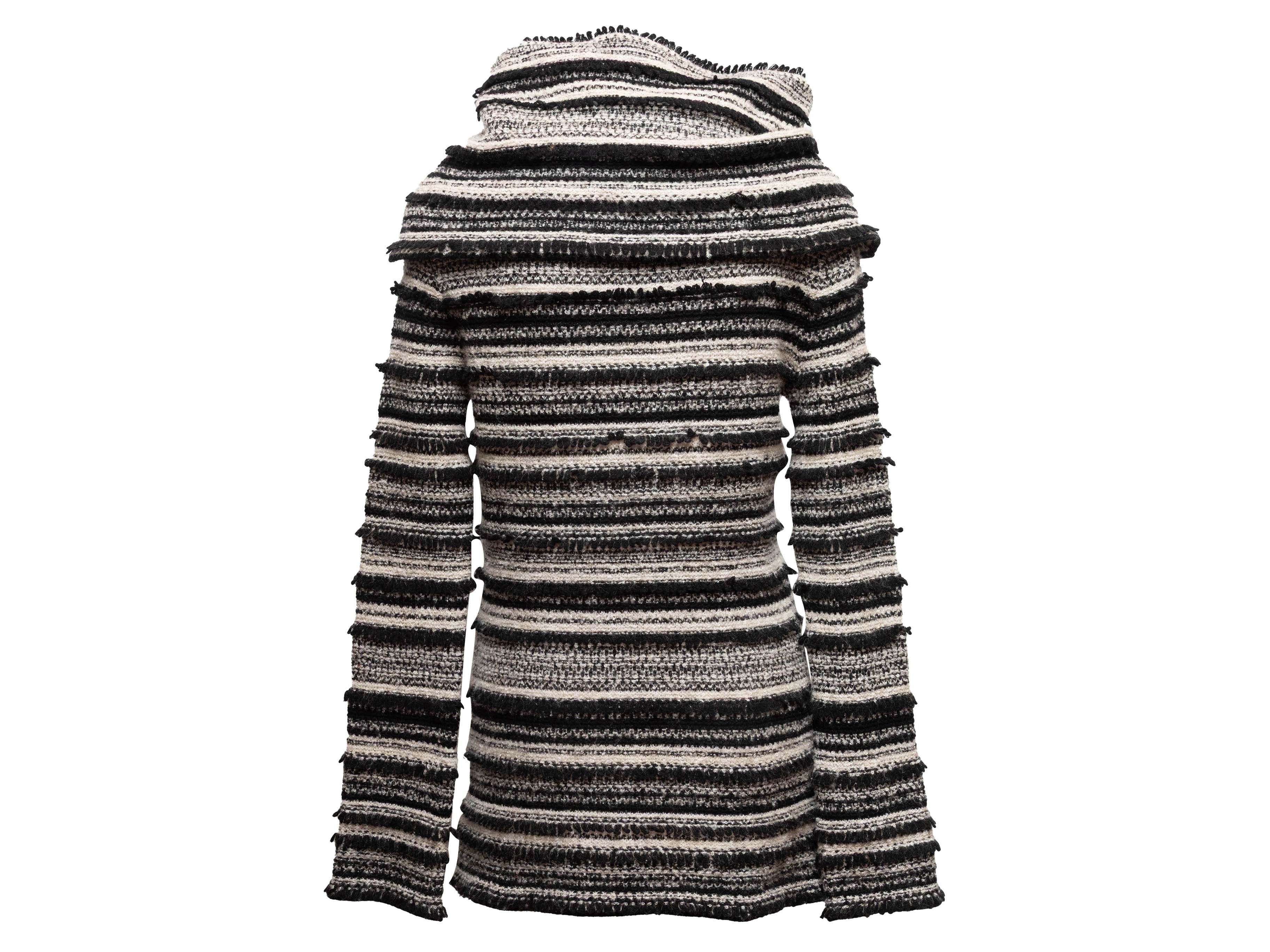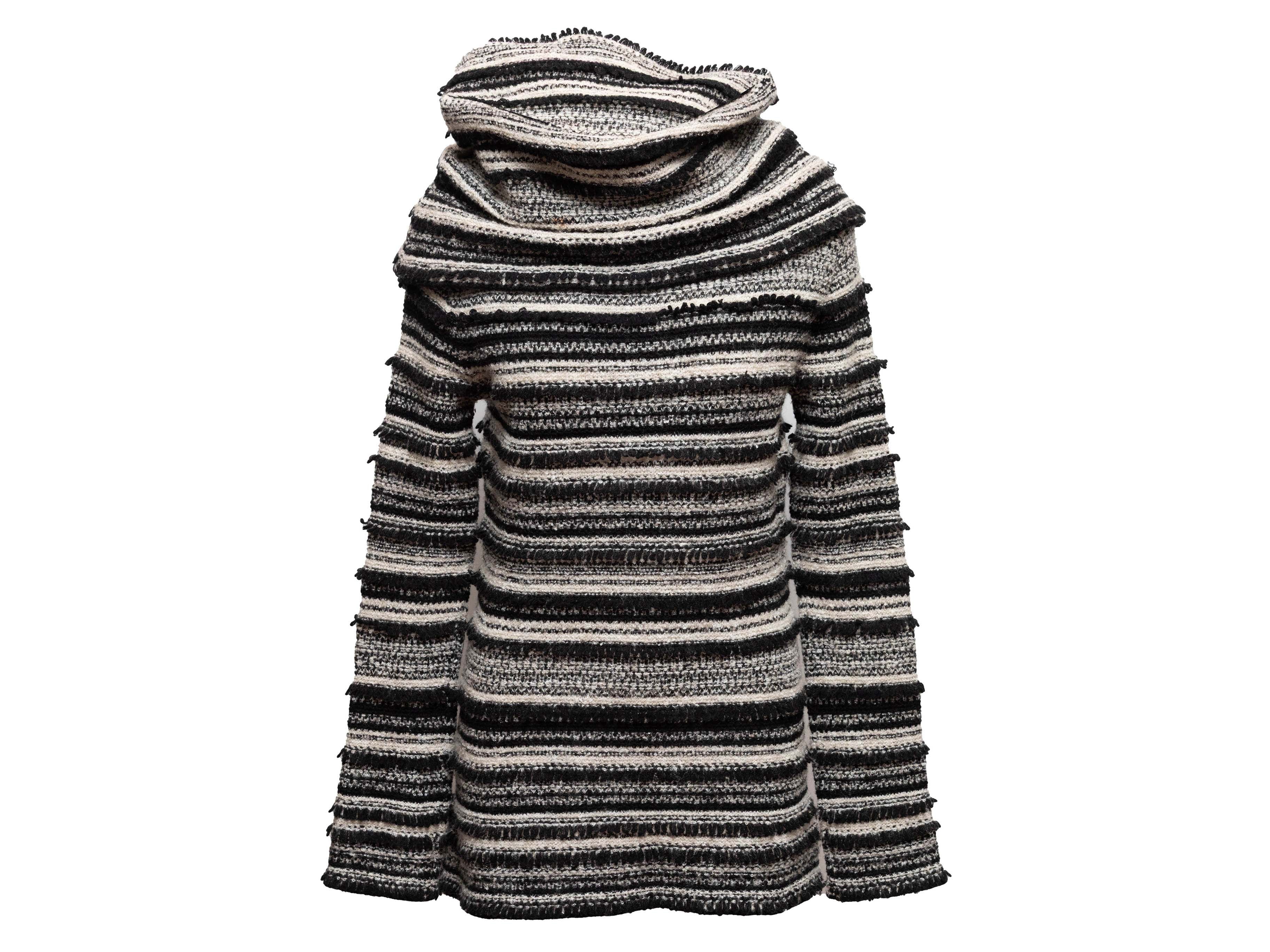 Product Details: Black and white striped cowl neck wool and cashmere-blend sweater by Christian Dior. 34" bust, 17" shoulder width, 31" length.
