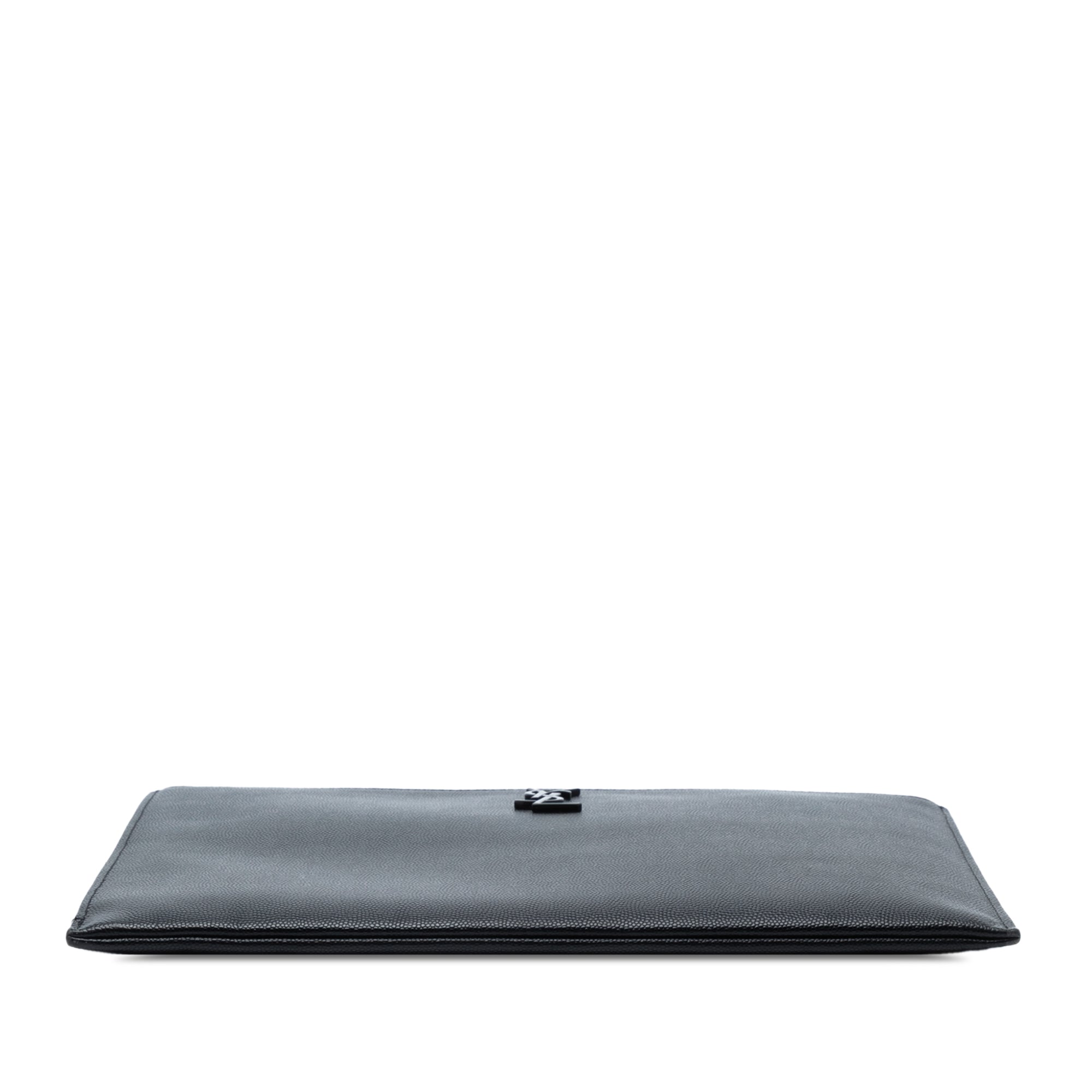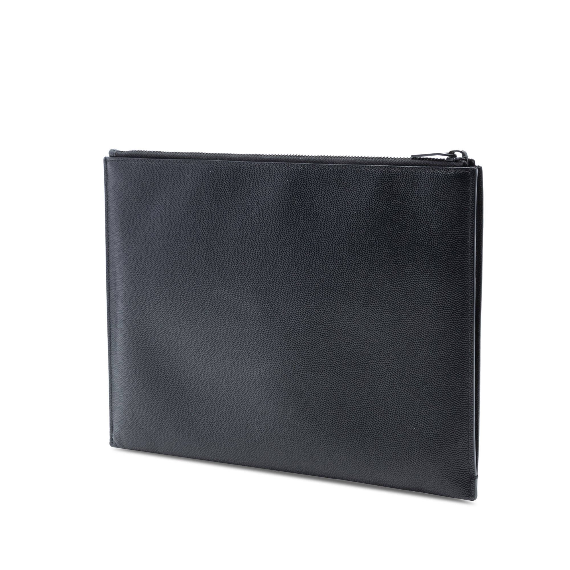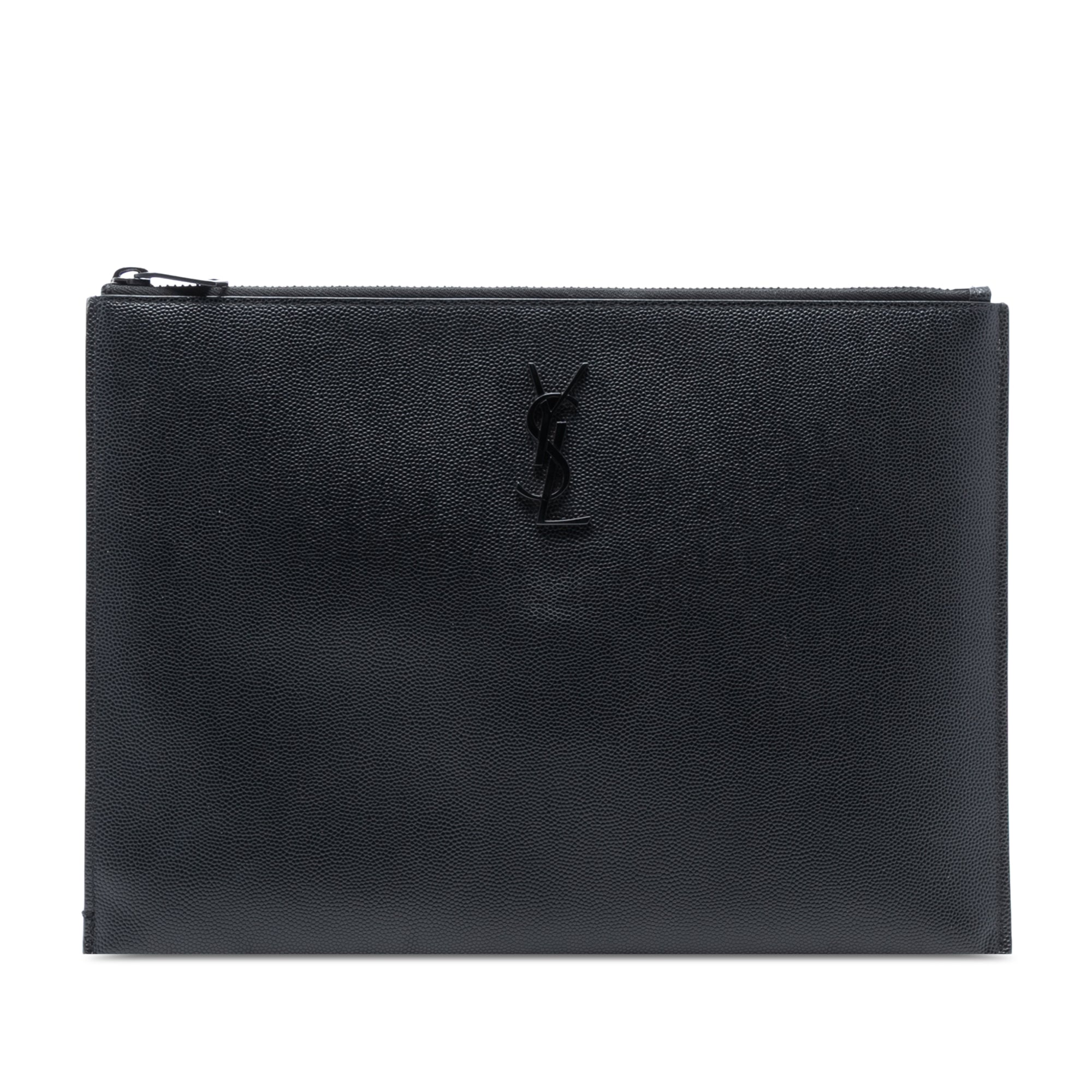 Black Saint Laurent Grain De Poudre Monogram Monochrome iPad Case Clutch Bag
