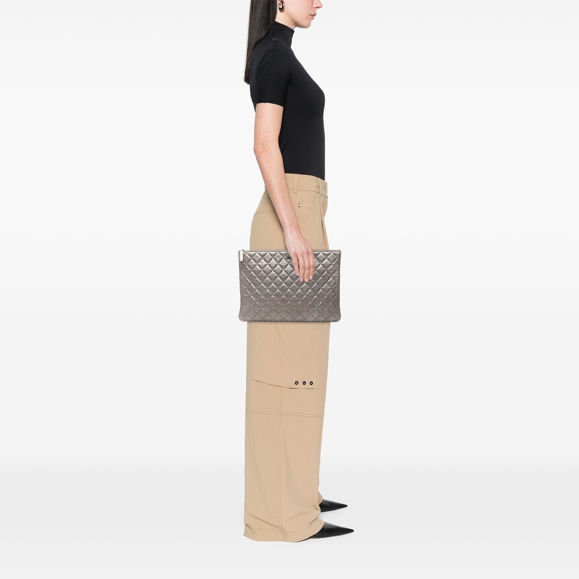 Silver Chanel Large Quilted Metallic Lambskin O Case Clutch