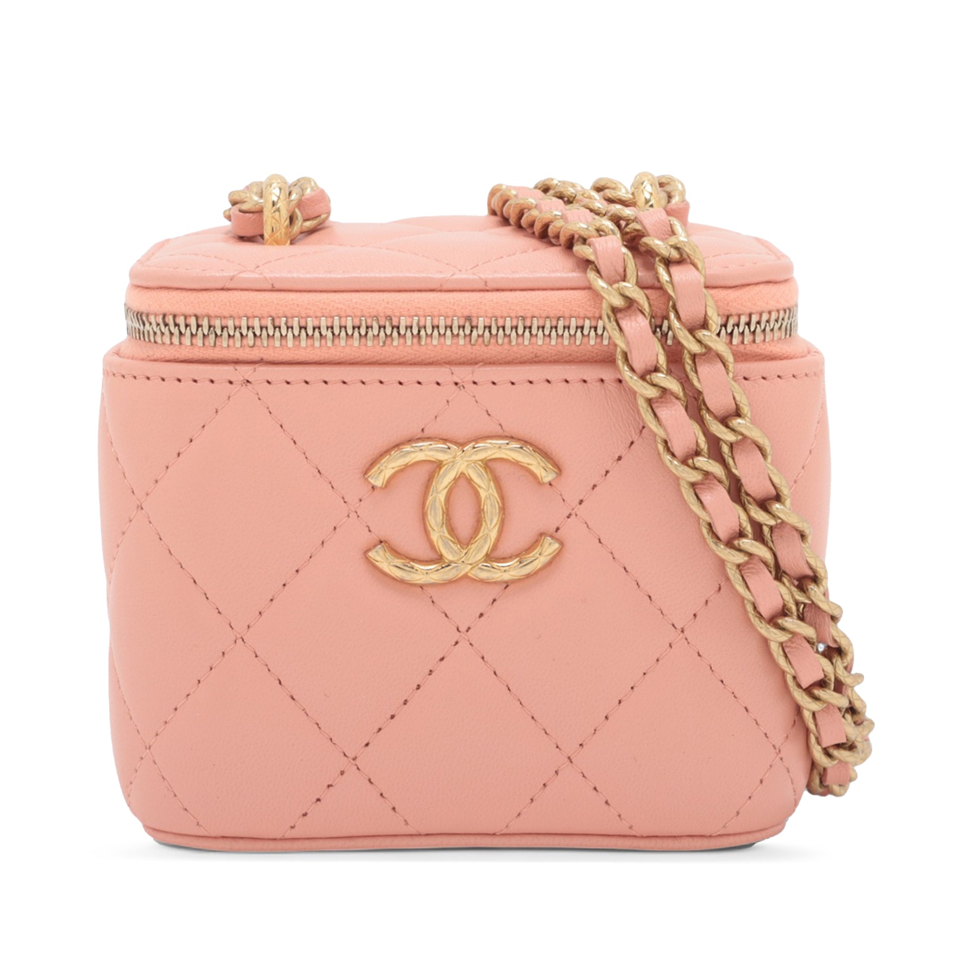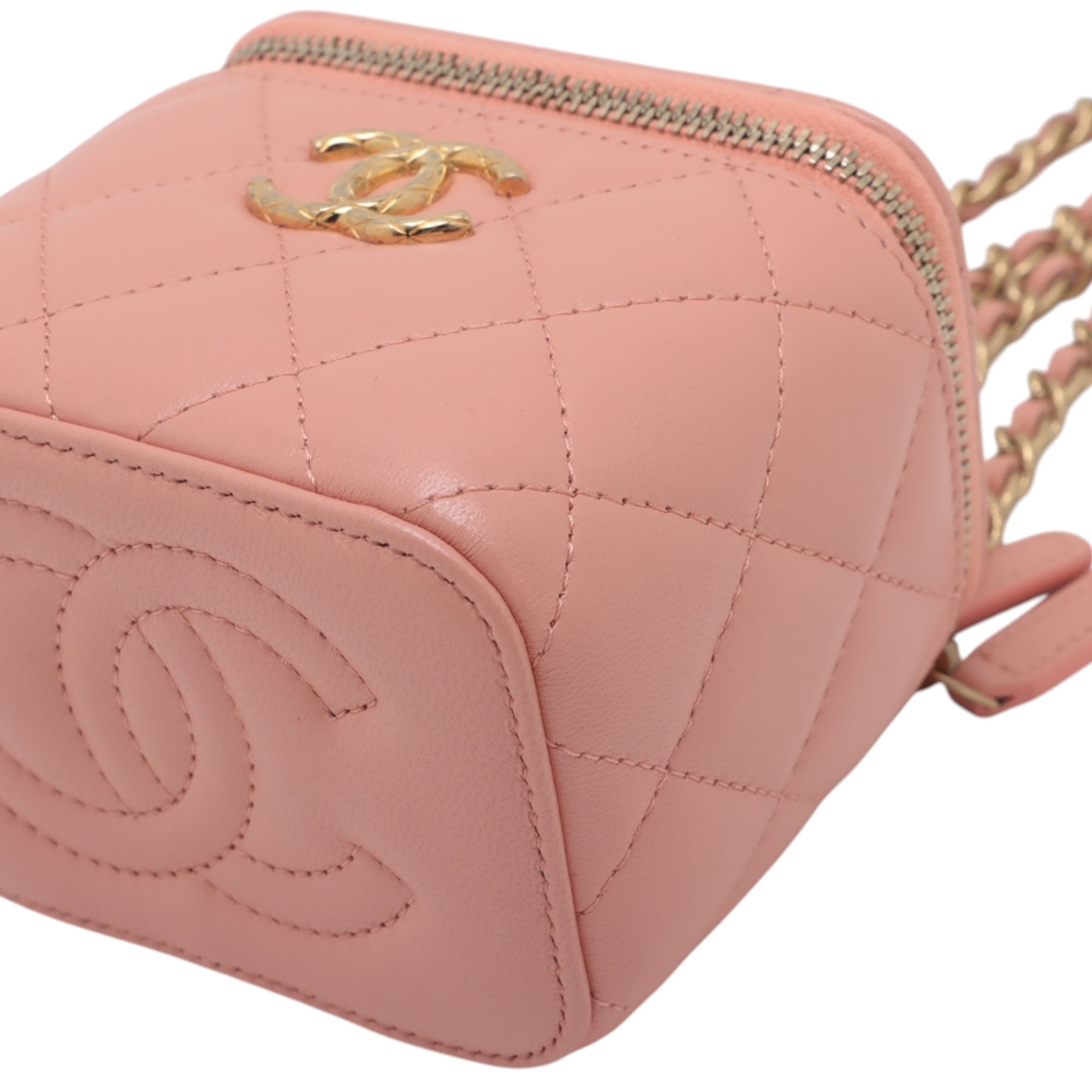 Pink Chanel Mini CC Quilted Lambskin Vanity Case With Chain Crossbody Bag