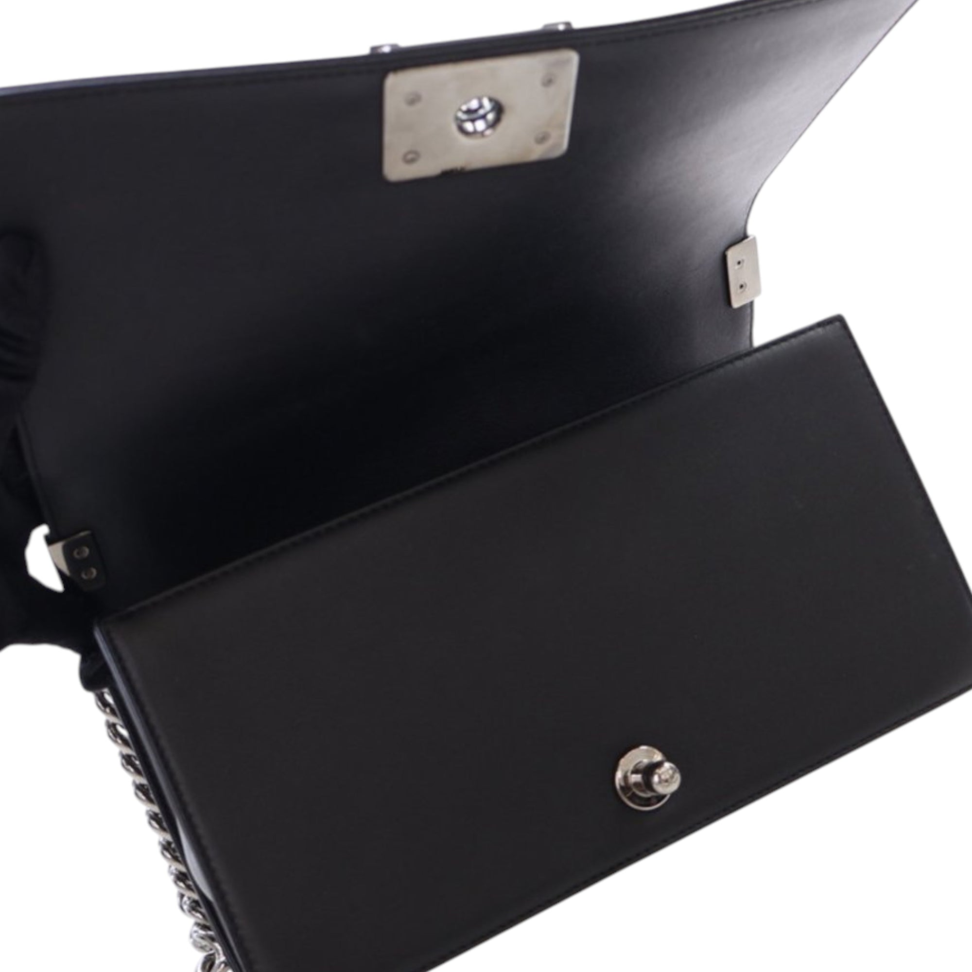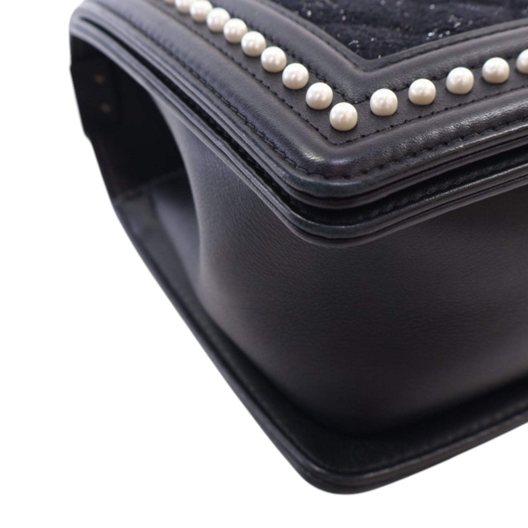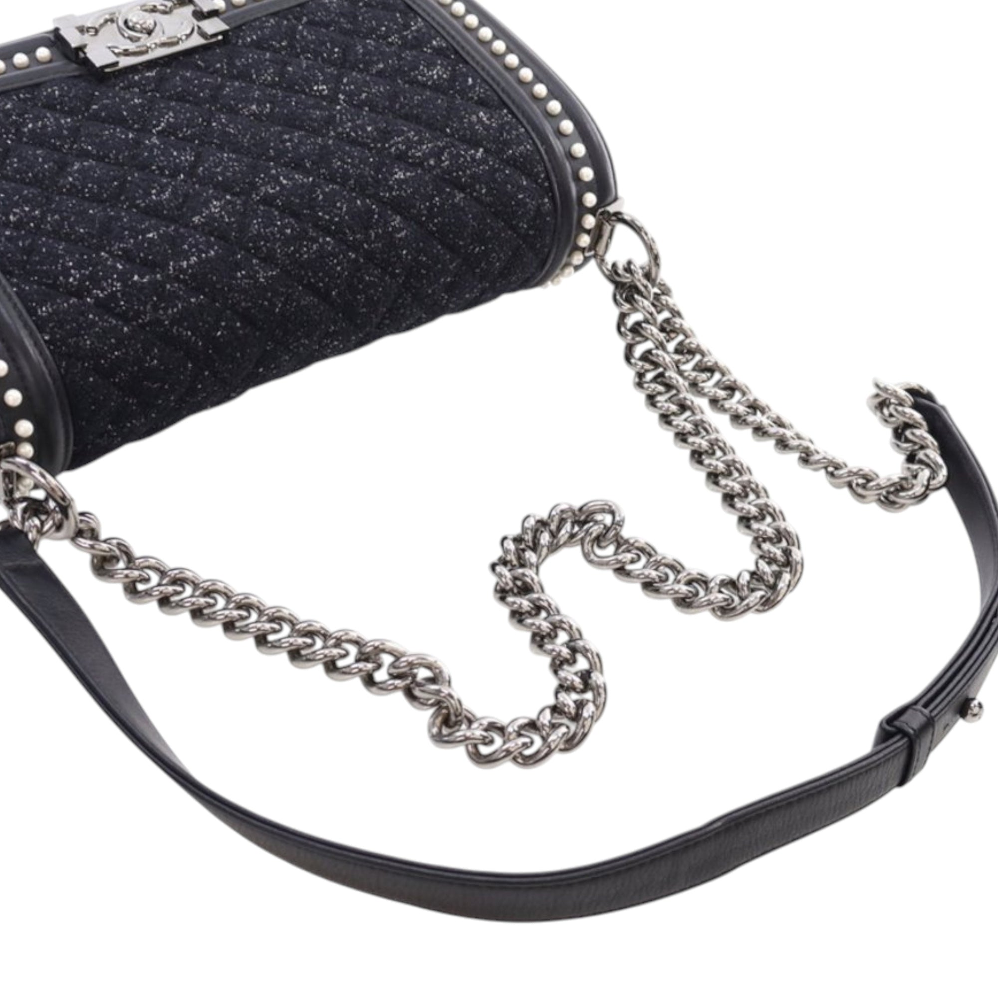 Black Chanel Old Medium Quilted Tweed and Calfskin Pearl Boy Flap Crossbody Bag