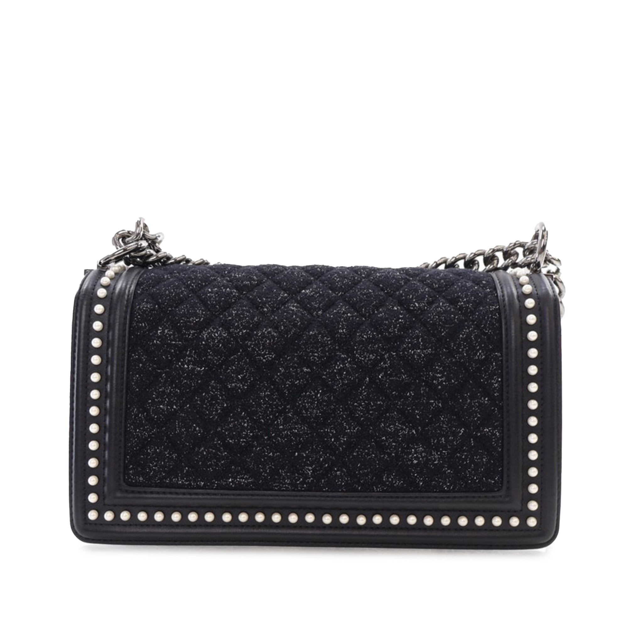 Please note this is a pre-owned item that may display signs of wear consistent with the condition listed above and shown in photos. Designer Revival guarantees this is an authentic Black Chanel Old Medium Quilted Tweed and Calfskin Pearl Boy Flap Crossbody Bag or 100% of your money back. Learn more about our authentication process.
