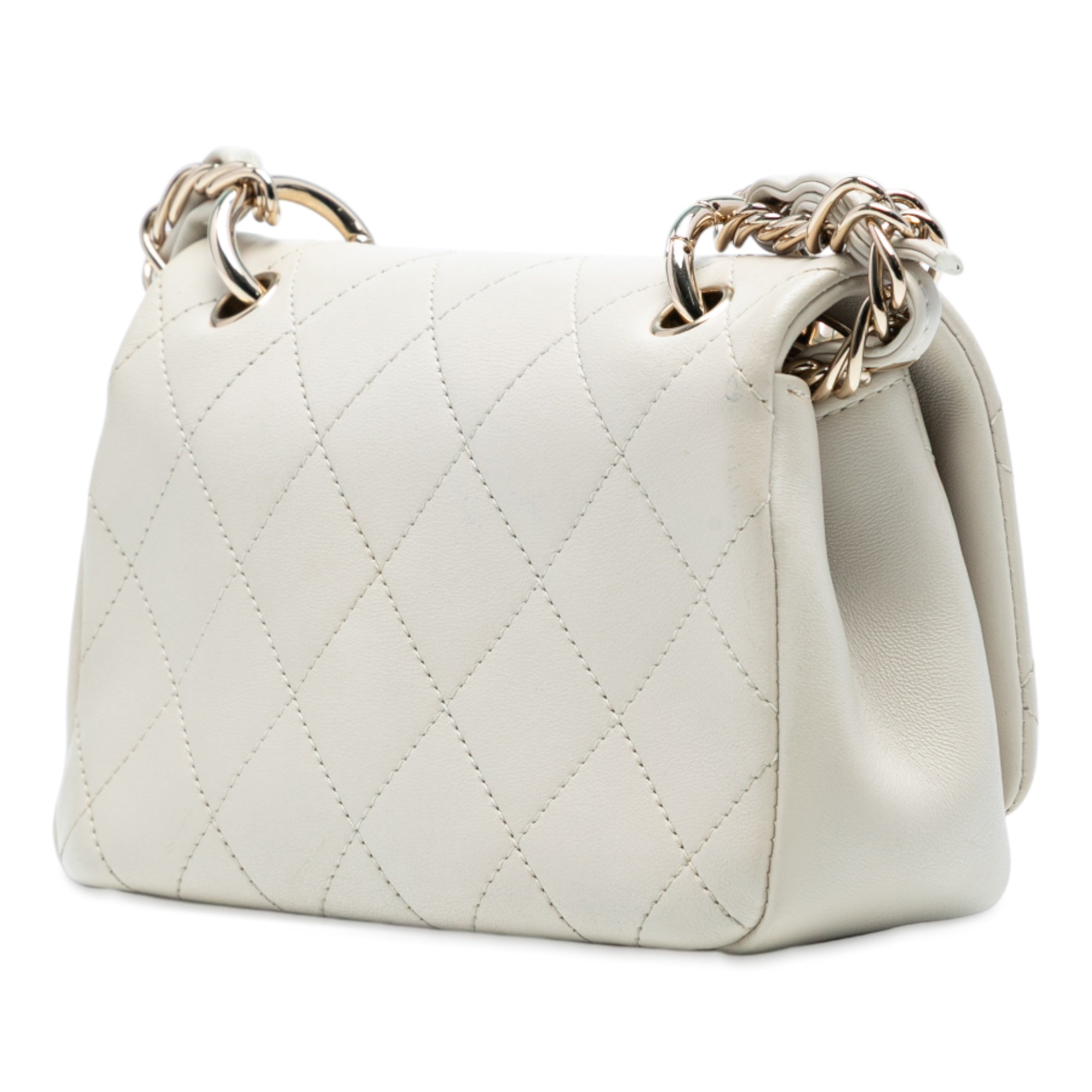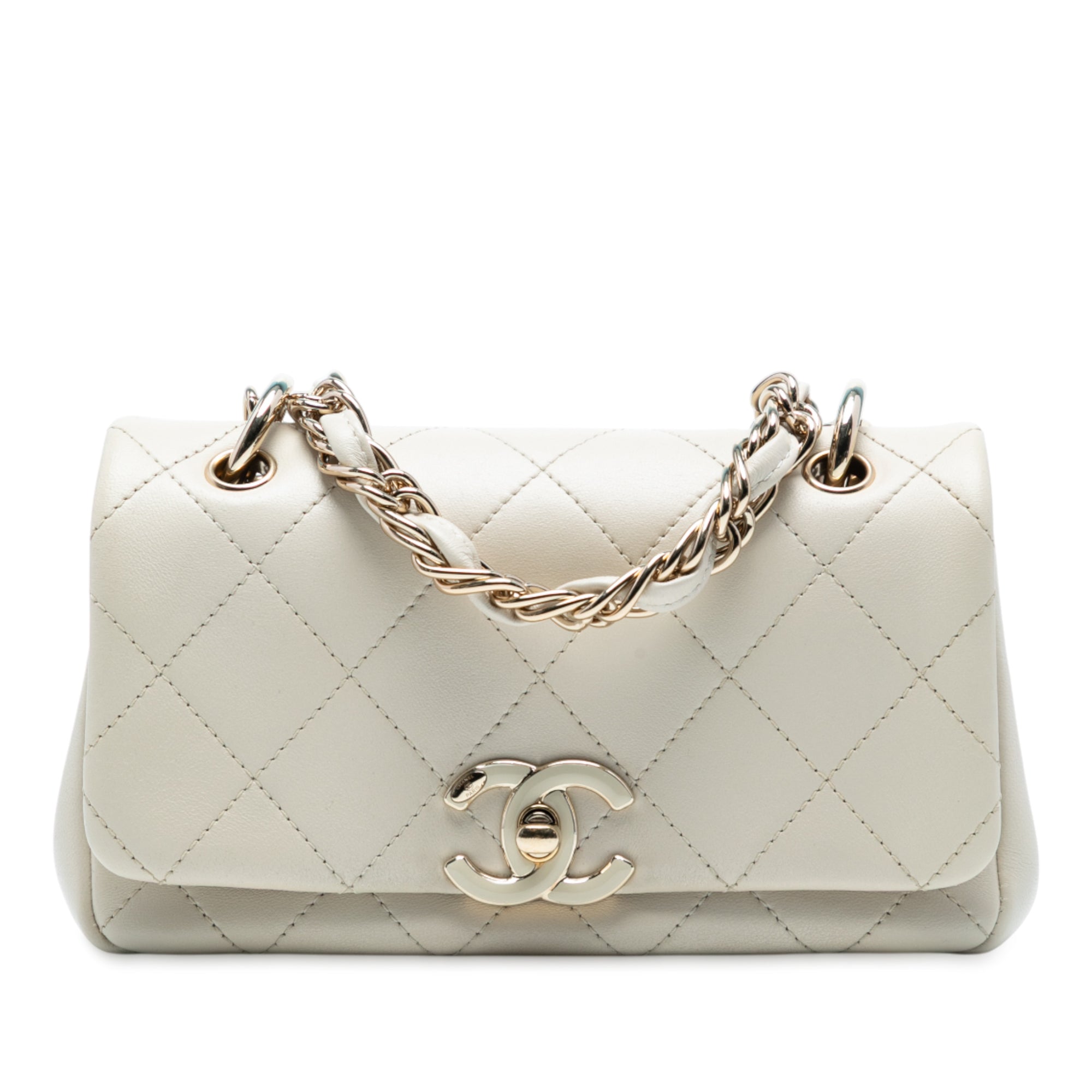 White Chanel Medium Lambskin Twist Chain Enamel CC Flap Crossbody Bag
