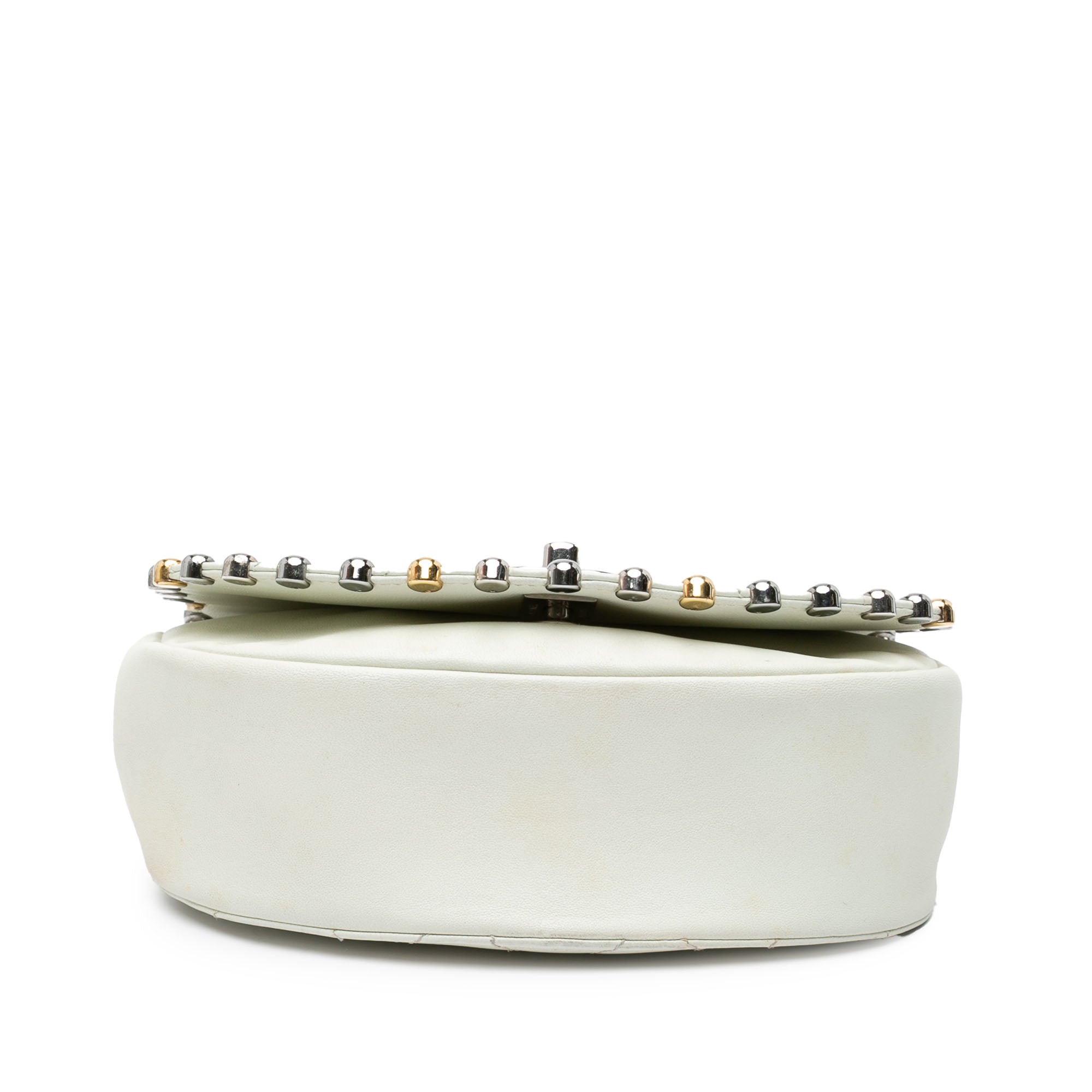 White Chanel Small Quilted Lambskin Studded Bubble Flap Crossbody Bag
